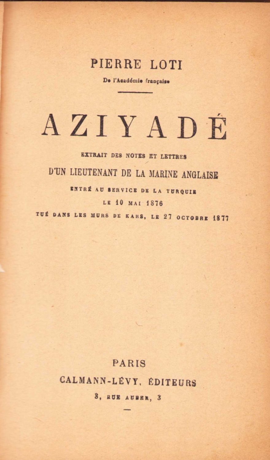 Aziyade, Pierre Loti, Editeurs Galmann-Levy, Paris, Fransızca, 317 sayfa, 11,5x18 cm.