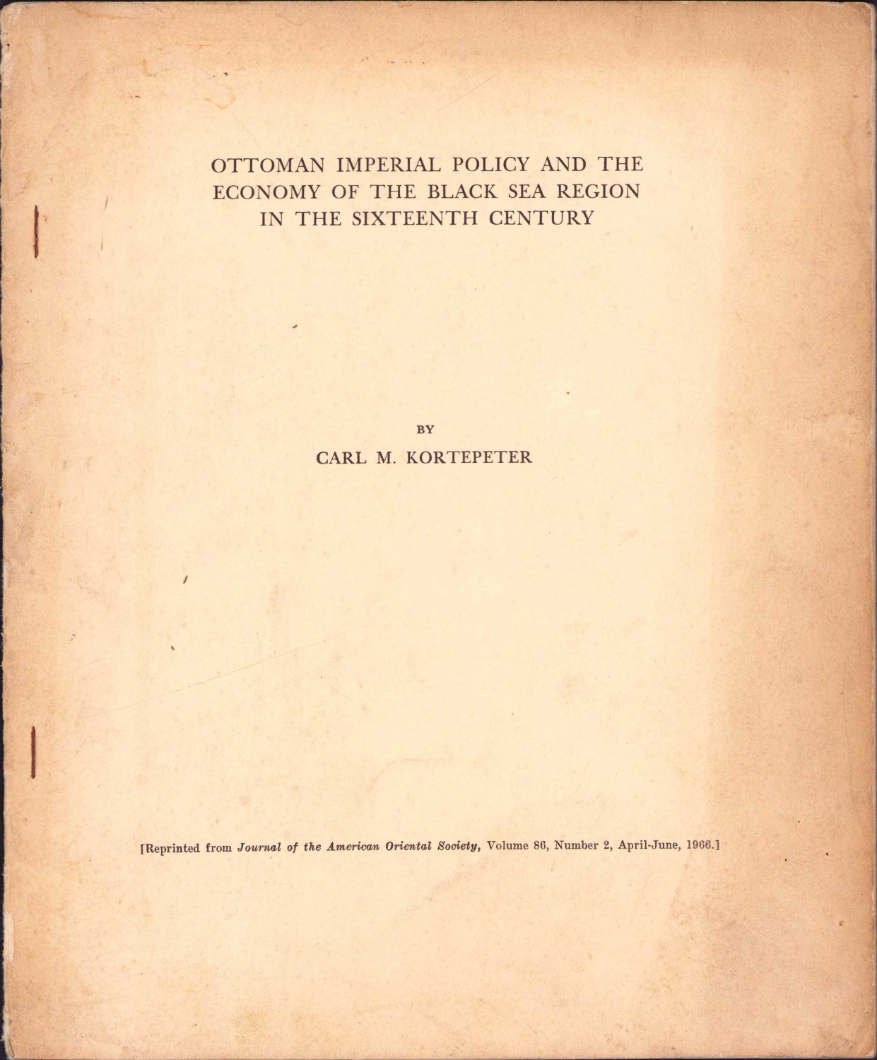 Ottoman Imperial Policy and The Economy of The Black Sea Region in The Sixteenth Century, Carl M. Kortepeter, Yazarından imzalı ve ithaflı, İngilizce, 28 sayfa, 20,5x25,5 cm.