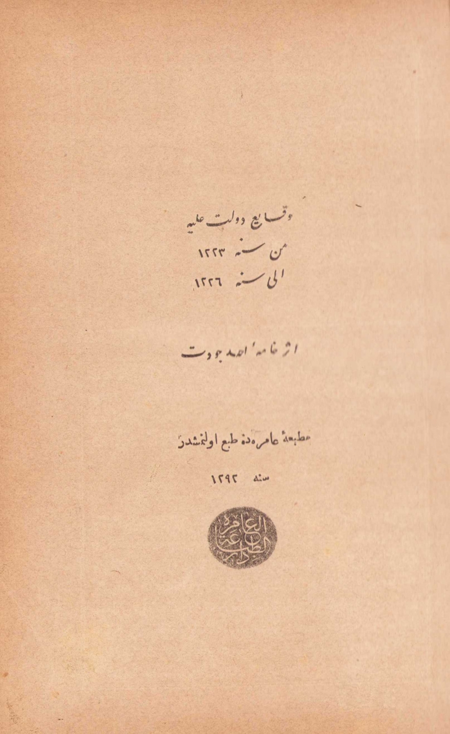 Tarih-i Cevdet, Muharriri: Ahmed Cevdet Paşa, On İki Cild [Beş Cildde Takım], Matbaa-i Osmaniye, 1309, Osmanlıca, 16,5x23,5 cm.