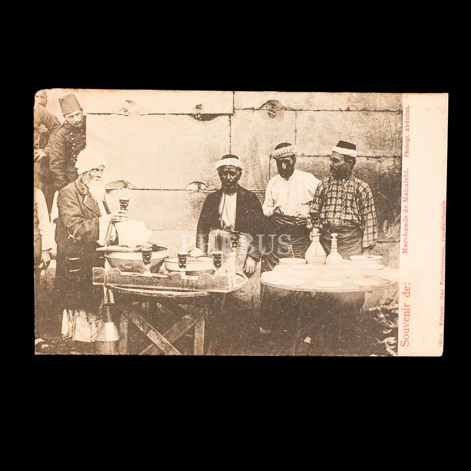Seyyar muhallebiciler, "Souvenir de: Marchands de Mahalebi", foto. Abdullah (Freres), ed. Max Fruchtermann, Constantinople...