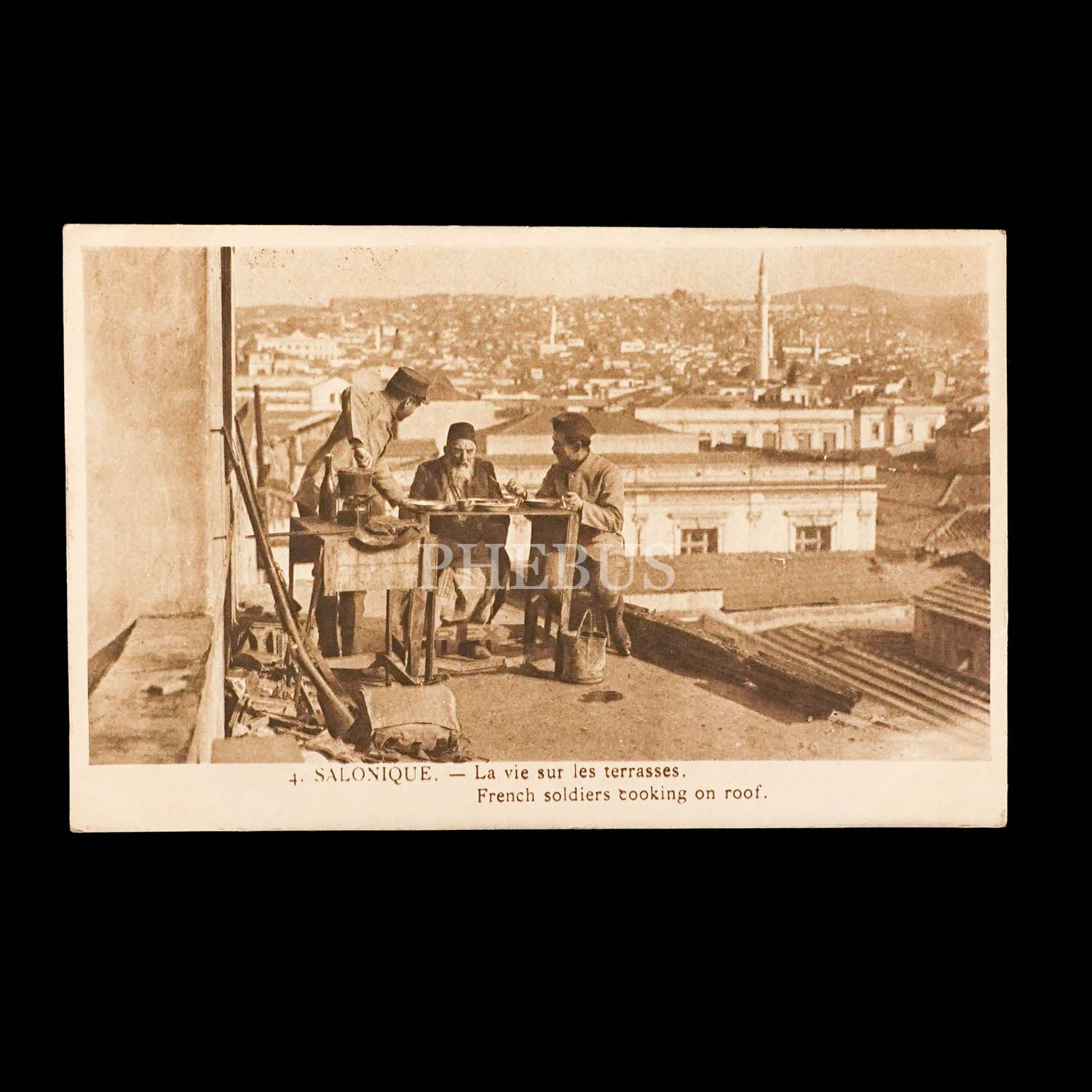 Selanik´te, terasları kontrol eden Fransız askerleri, "Salonique - La vie sur les terrases. French soldiers looking on roof"...