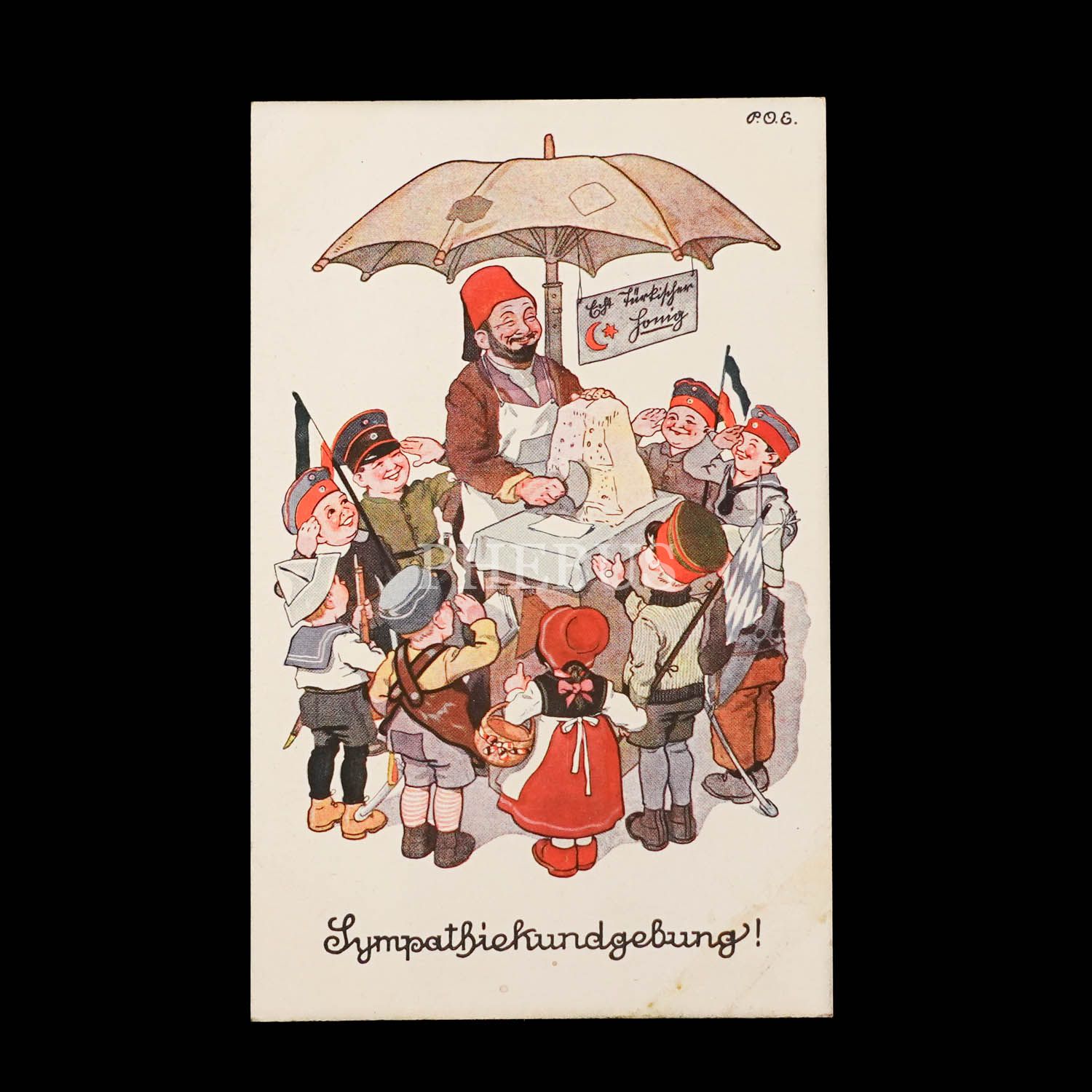 Türkiye´nin İttifak güçlerine katılması sonrası yayımlanmış, Almanca "Sympathiekundgebung!" (Sempati mitingi!) başlıklı kartpostal, ed. Kriegpostkarte...