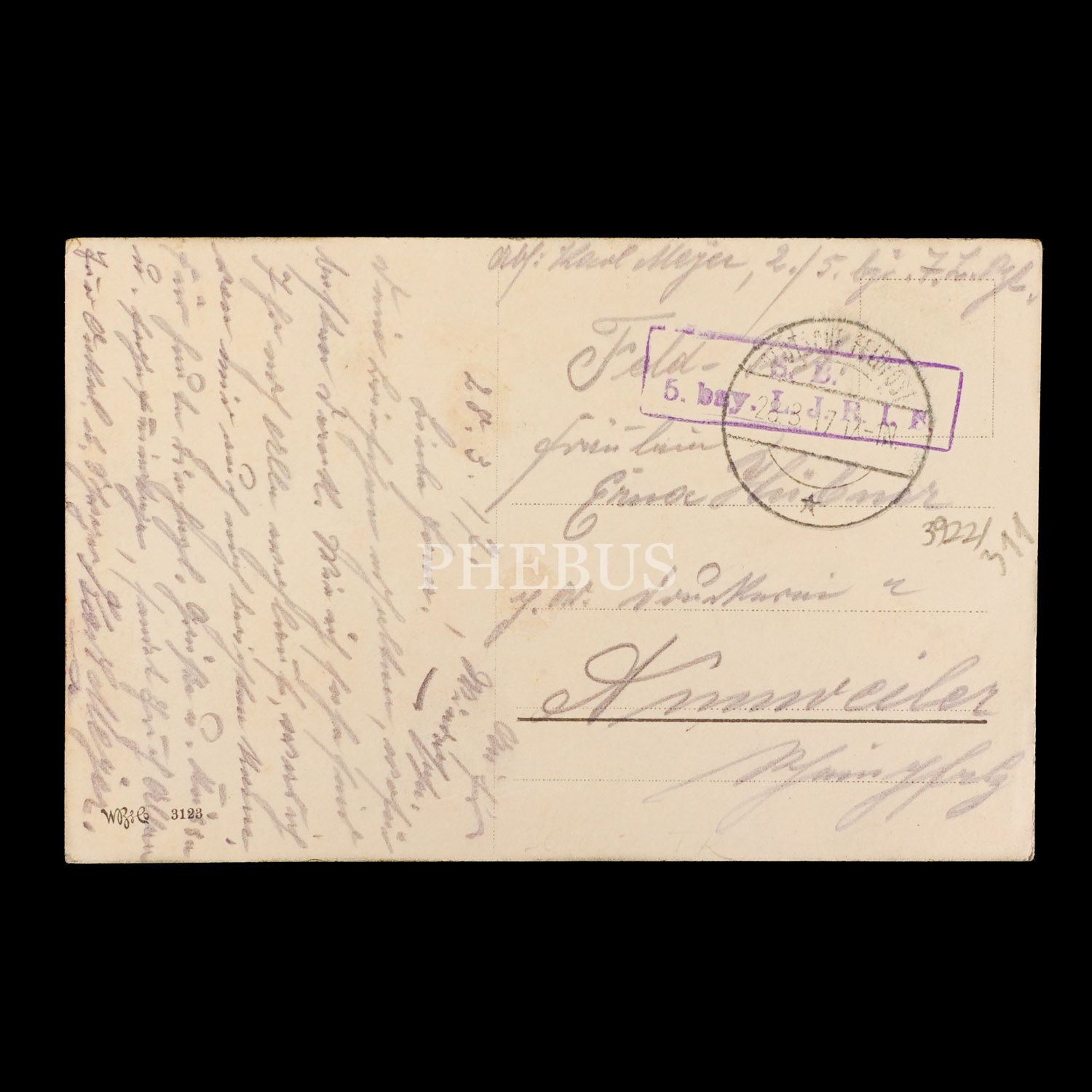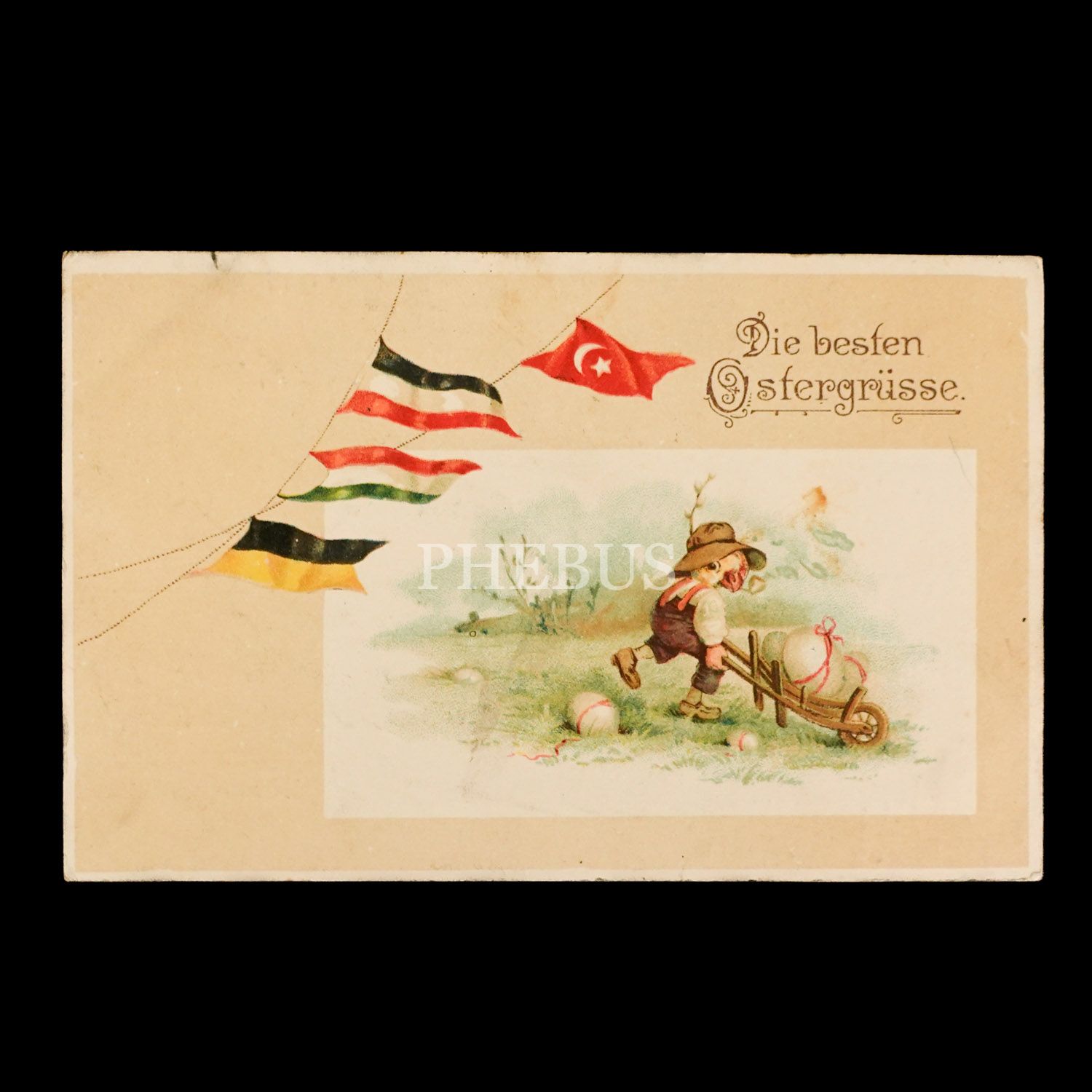 İttifak devletlerinin bayrakları ve yumurta taşıyan kuş görselli kartpostal...