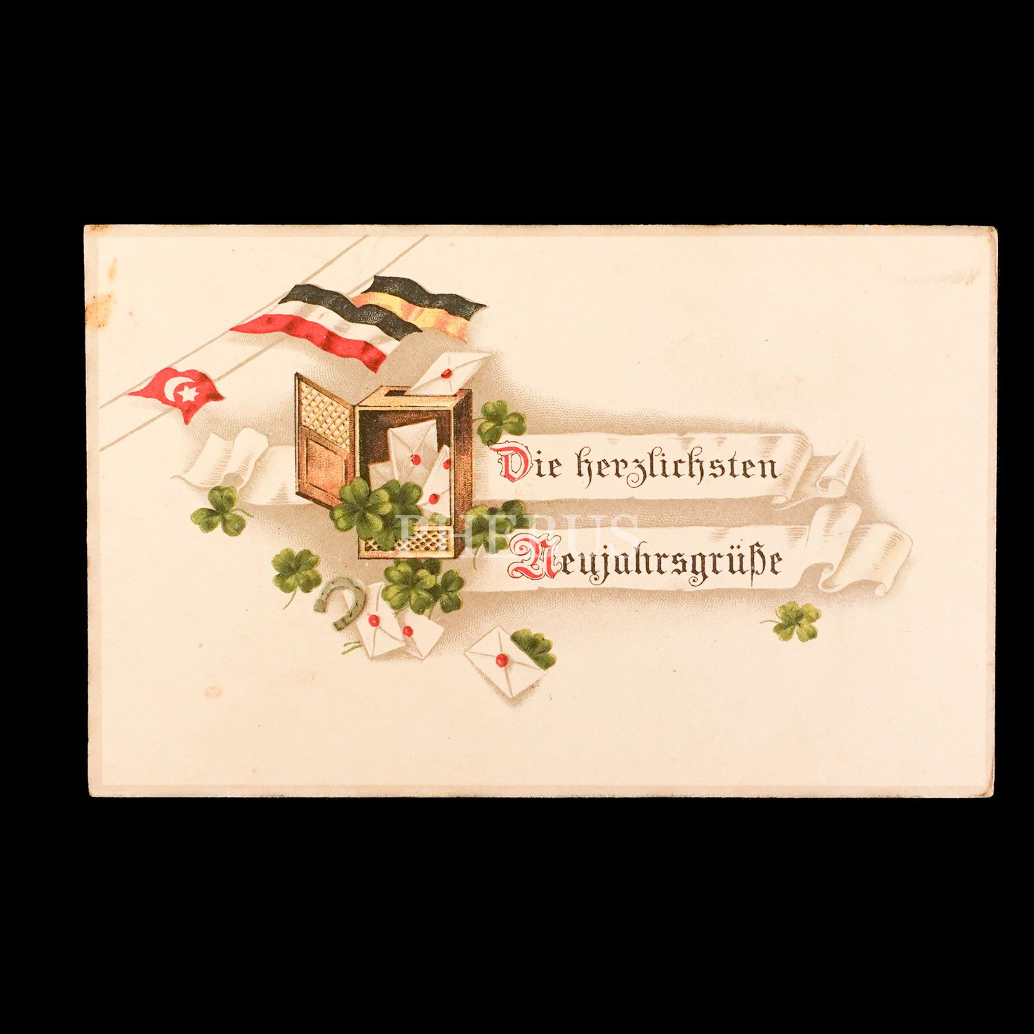 İttifak devletlerinin bayrakları ve mektup zarfları görselli kartpostal...