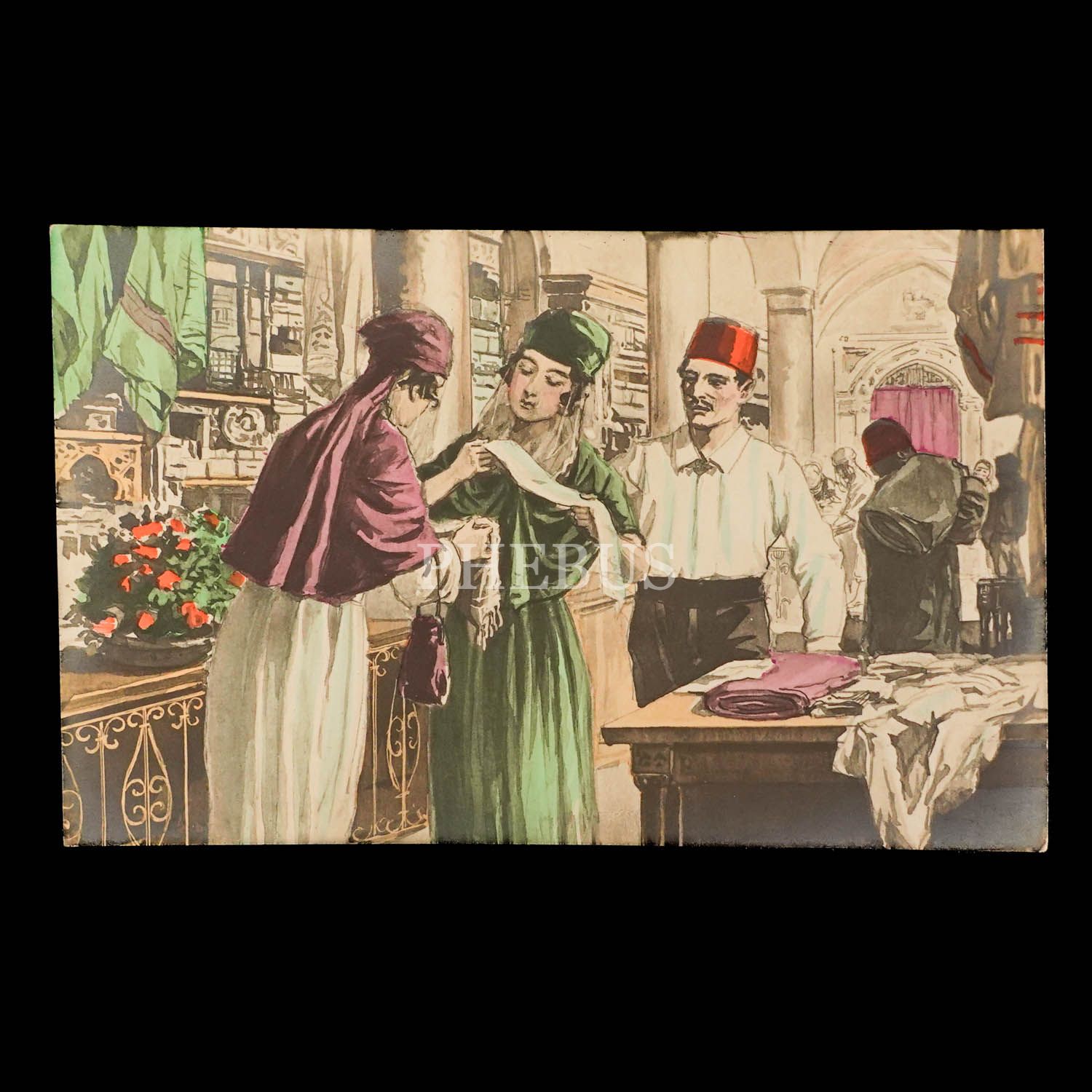 Bir çarşı içinde kendilerine kumaş bakan Türk kadınları...