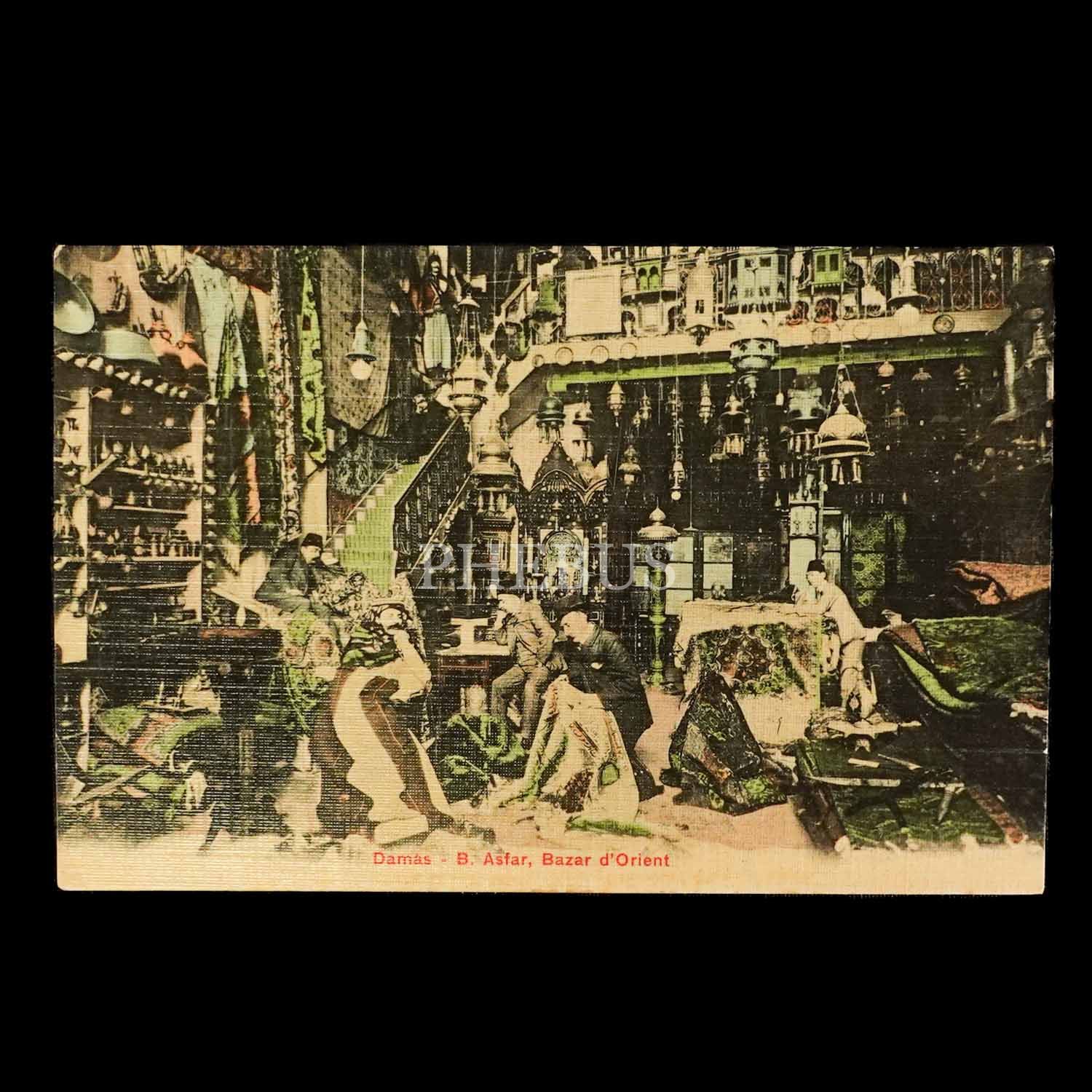 Şam´da bir çarşı içi görselli ipek kartpostal, "Damas - B. Asfar, Bazar d´Orient", ed. A. Breger Freres, Paris...