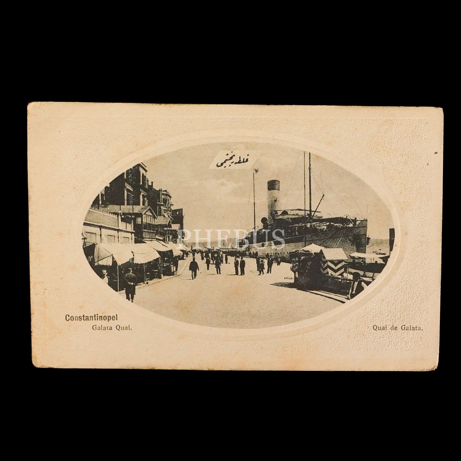 Galata Rıhtımı görselli gofre kartpostal, "Constantinopel - Galata Quai", ed. MJ.AF....
