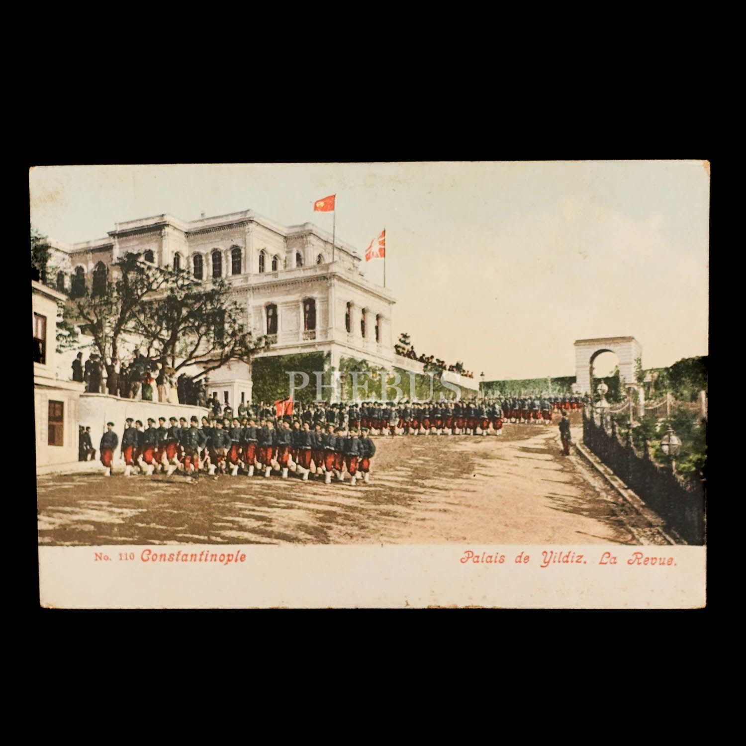 İstanbul´u ziyaret eden Almanya İmparatoru Kayzer Wilhelm´in şerefine Yıldız Sarayı´nda tertip edilen görkemli geçit merasiminden bir manzara, "Constantinople - Palais de Yildiz. La Revue."...