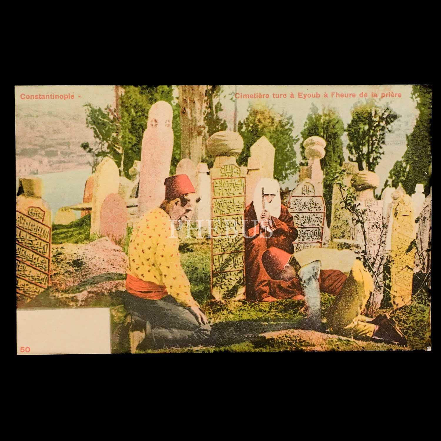 Eyüp Mezarlığı´nda namaz kılanlar, "Constantinople - Cimetiere turc a Eyoub a l´heure de la priere"...