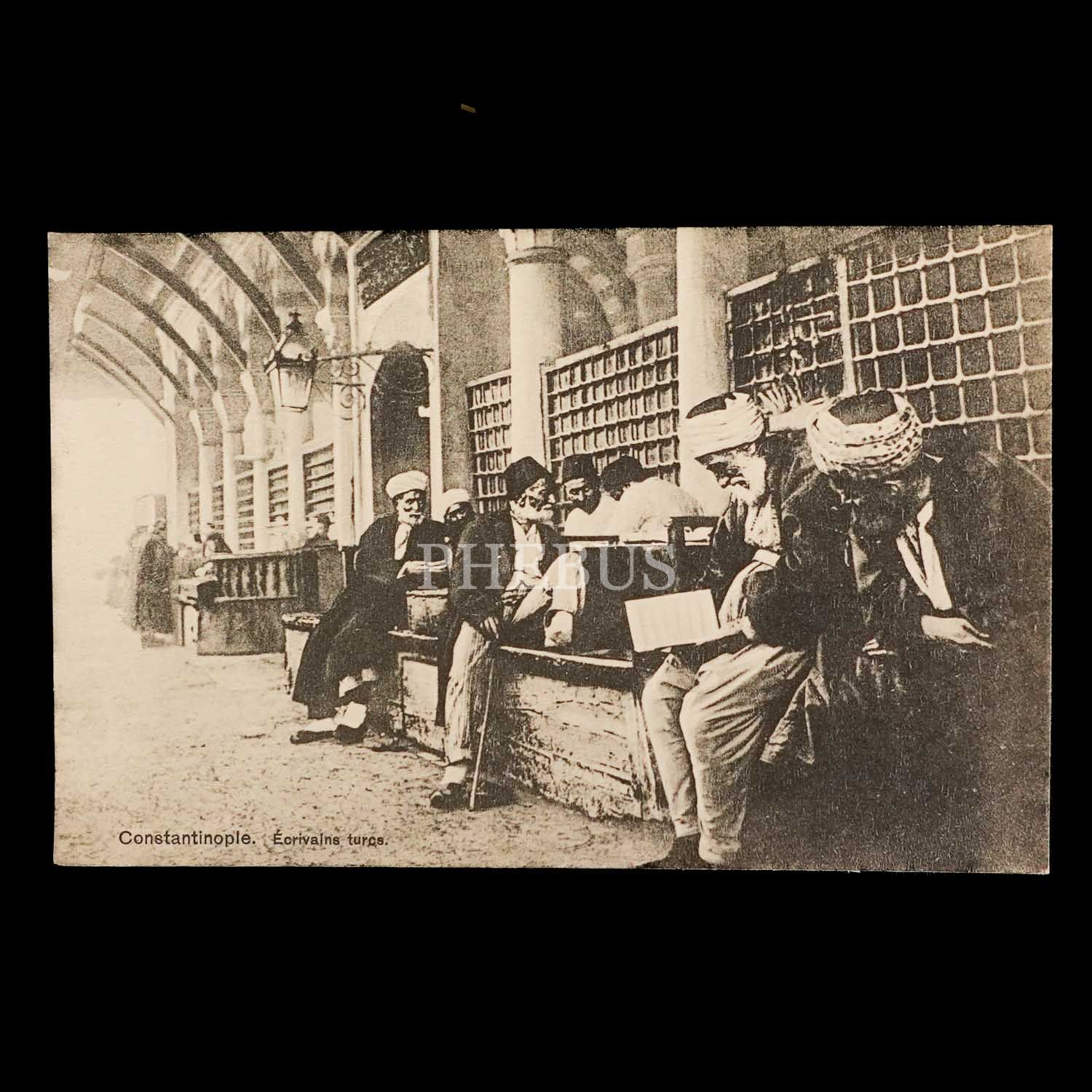 Bir cami önünde Türk hocalar, "Constantinople - Ecrivans turcs", ed. Au Bon Marche, Pera...