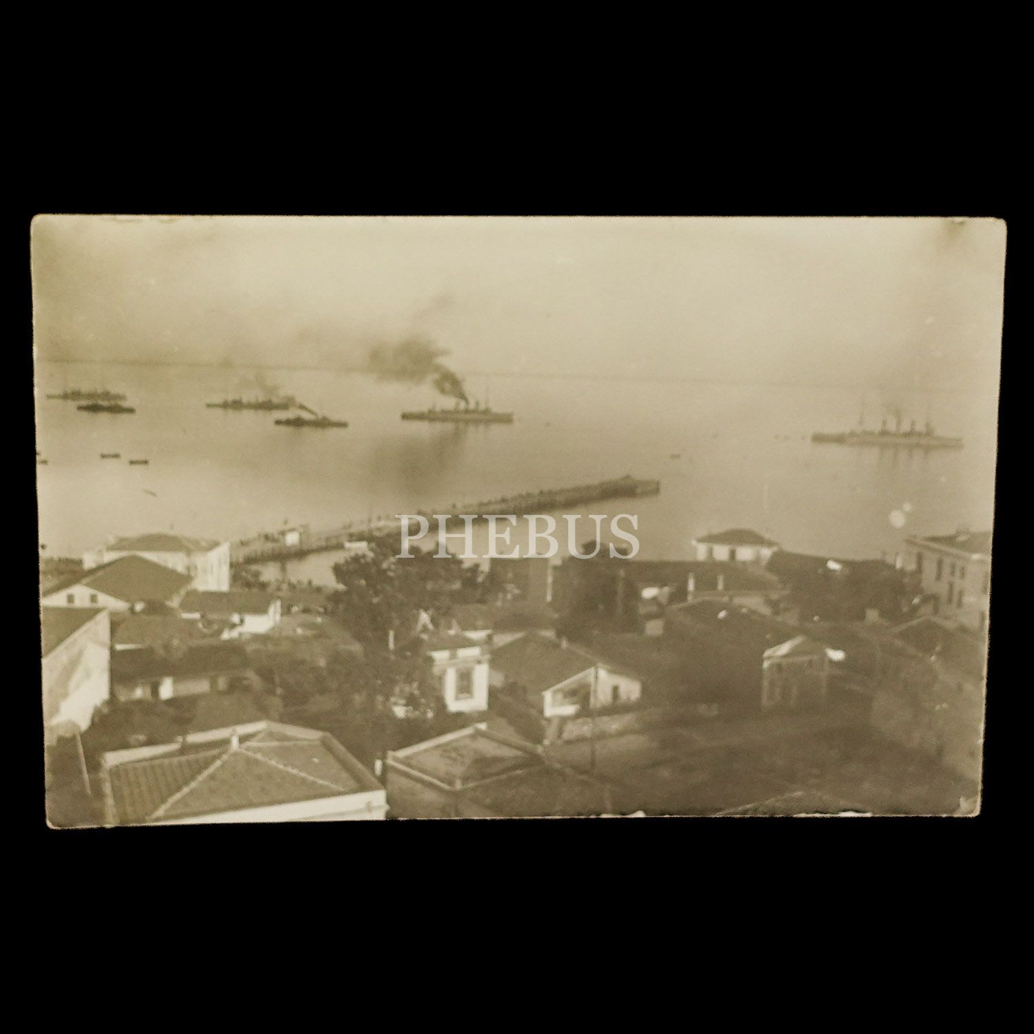 Bir kıyı şehrinin önünden geçen zırhlılar...