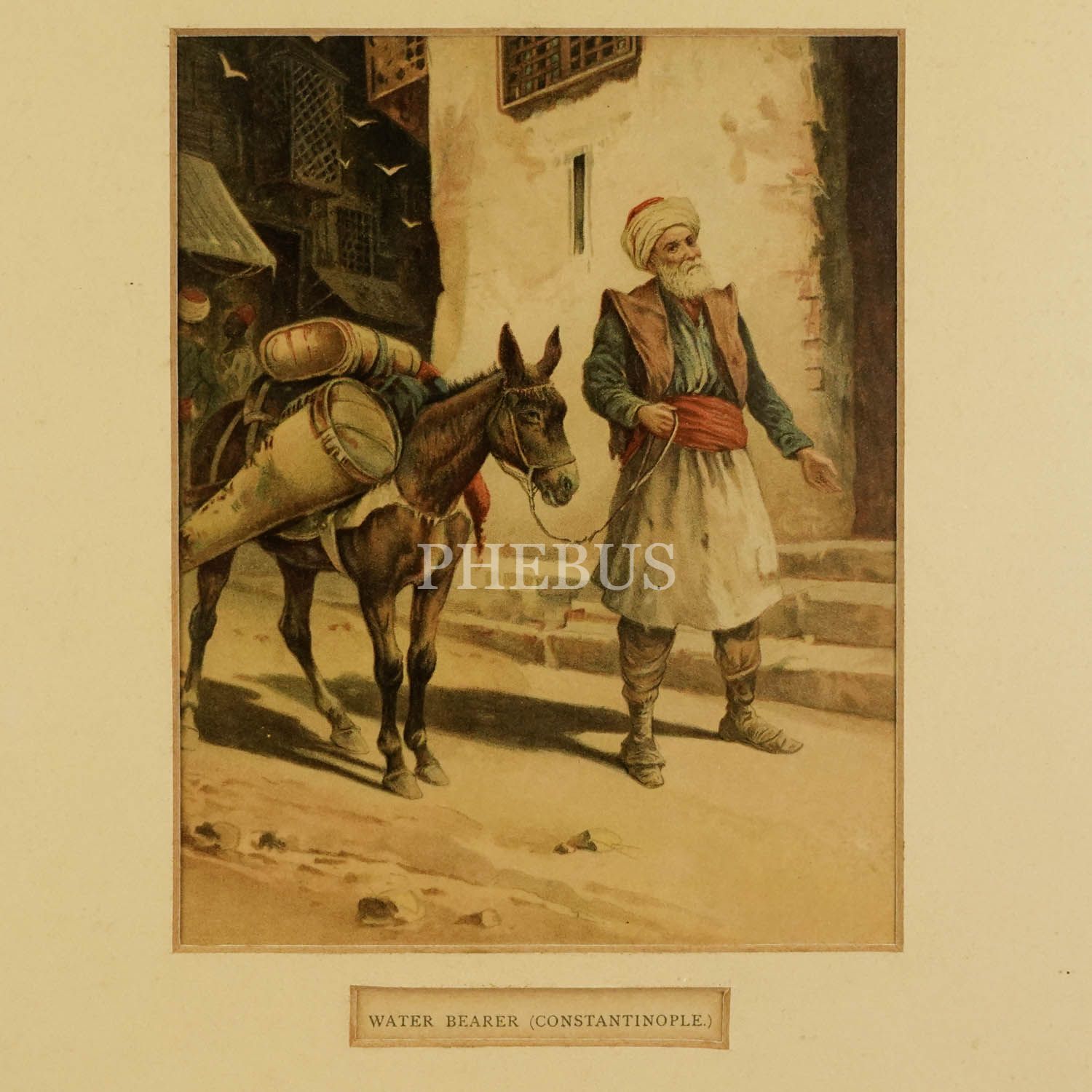 Water Bearer (Constantinople) elle renklendirme gravür, 44x40 cm...