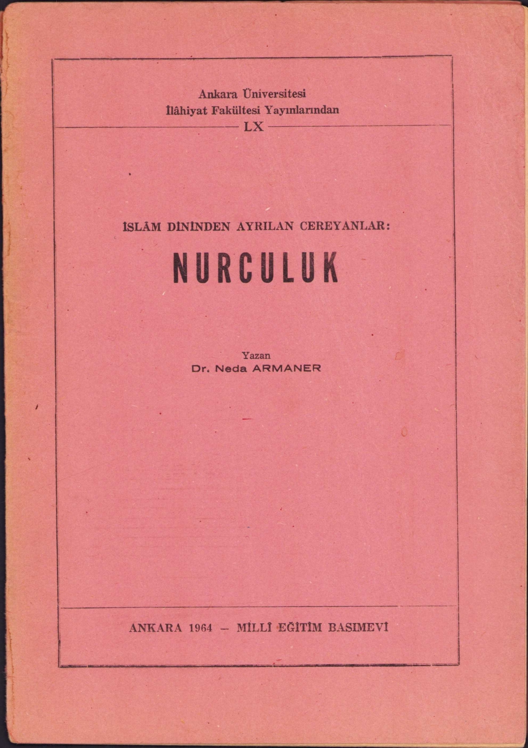 İslam Dininden Ayrılan Cereyanlar: Nurculuk, Neda Armener, Ankara, 1964, 38 sayfa, 16x24 cm
