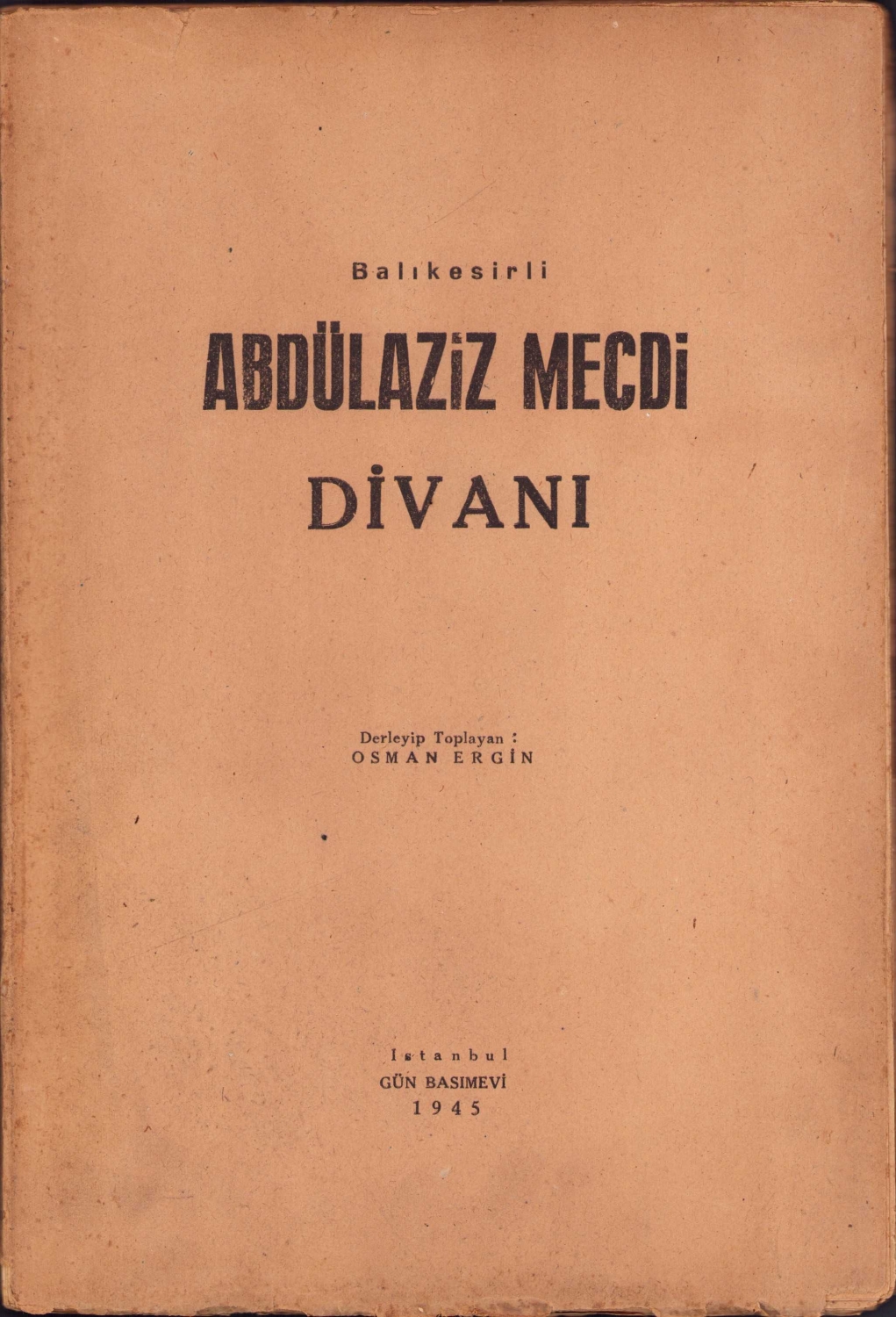 Balıkesirli Abdülaziz Mecdi Divanı, Osman Ergin, İstanbul, 1945, 156 sayfa, 16x24 cm