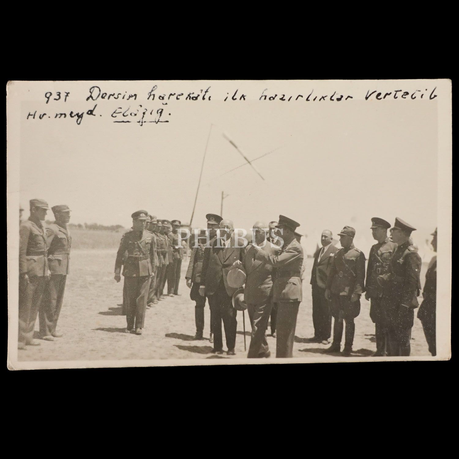 İsmet İnönü ve Refik Saydam, Elazığ Vertetil´deki hava üssünde Dersim Harekatı´nın ilk hazırlıklarını incelerken, 1937, 14x9 cm...