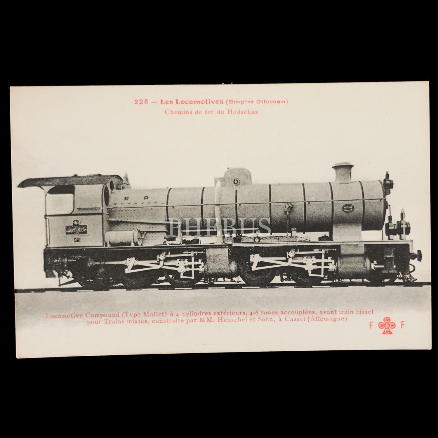 Hicaz Şimendiferi, "Les Locomotives (Empire Ottoman) - Chemins de fer du Hedschas", 14x9 cm...