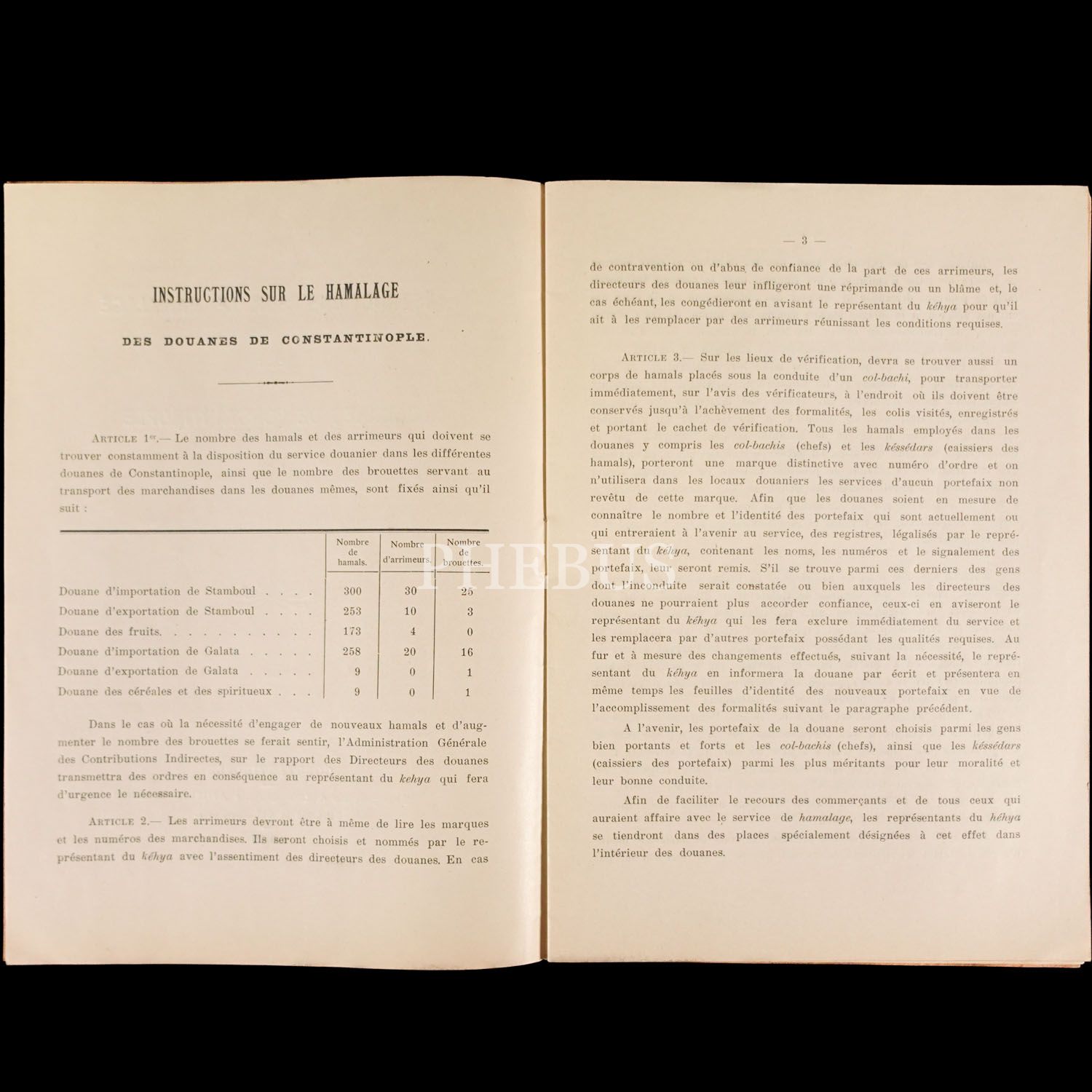 İZMİR GÜMRÜKLERİ HAMALLARINA DAİR TALİMATNAME (Osmanlıca ve Fransızca), 1323, 20x27 cm...