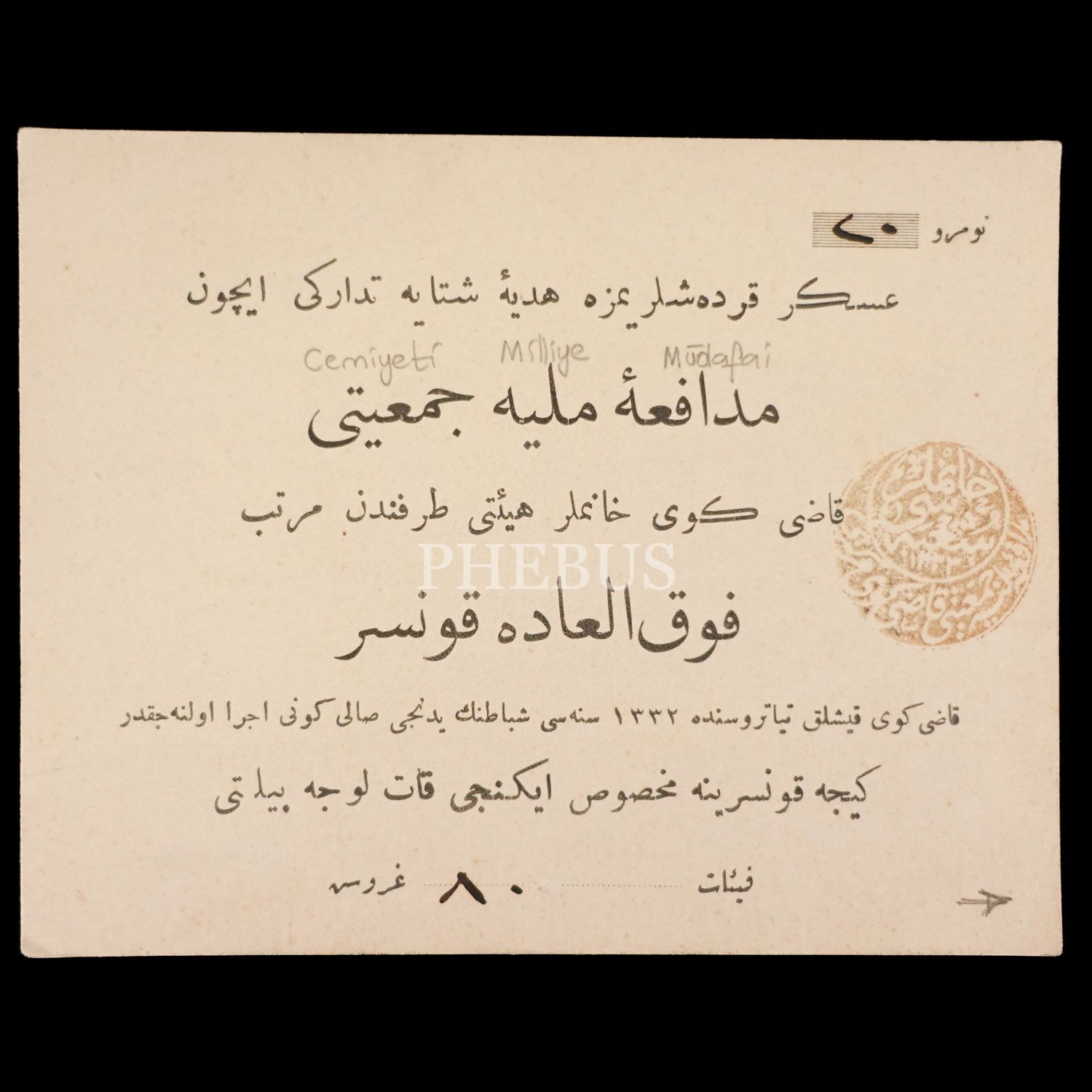 Müdafaa-i Milliye Cemiyeti Kadıköy Hanımlar Heyeti tarafından askerler yararına düzenlenen konserin davetiyesi, 1332, 13x11 cm...
