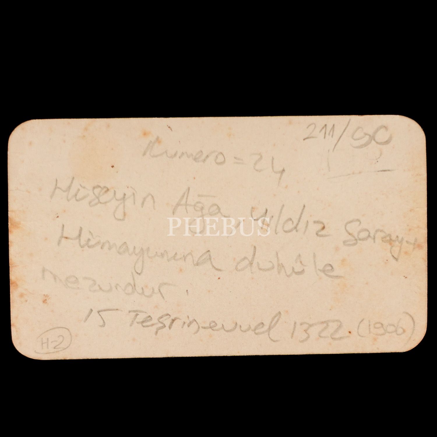 Hüseyin Ağa adına düzenlenmiş, "Yıldız SAray-ı Hümayunu´na duhule mezundur" yazılı, Yıldız Sarayı giriş kartı, 10x6 cm...
