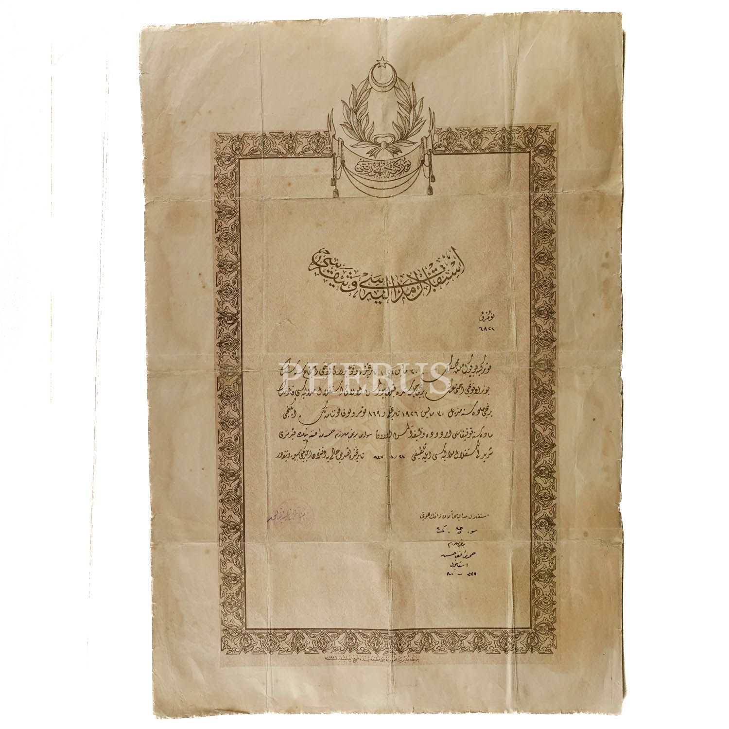 Birinci Mülazım Hamdi Efendi´nin Kırmızı Şeritli İstiklal Madalyası´nın beratı, 34x50 cm...