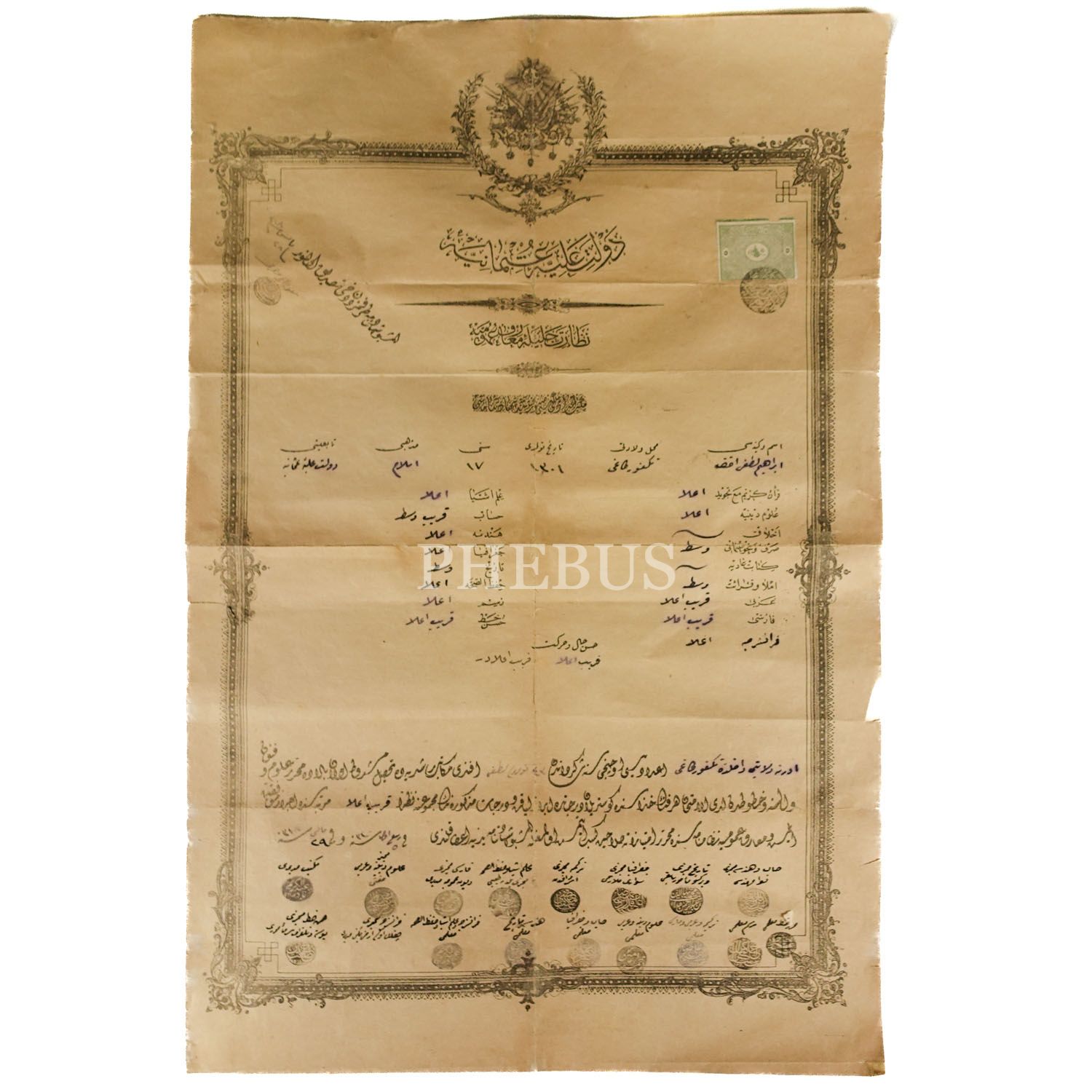 Edirne Vilayeti Tekfurdağı İdadisi´nden mezun olan İbrahim Lütfi Efendi´nin diploması, 34x51 cm...