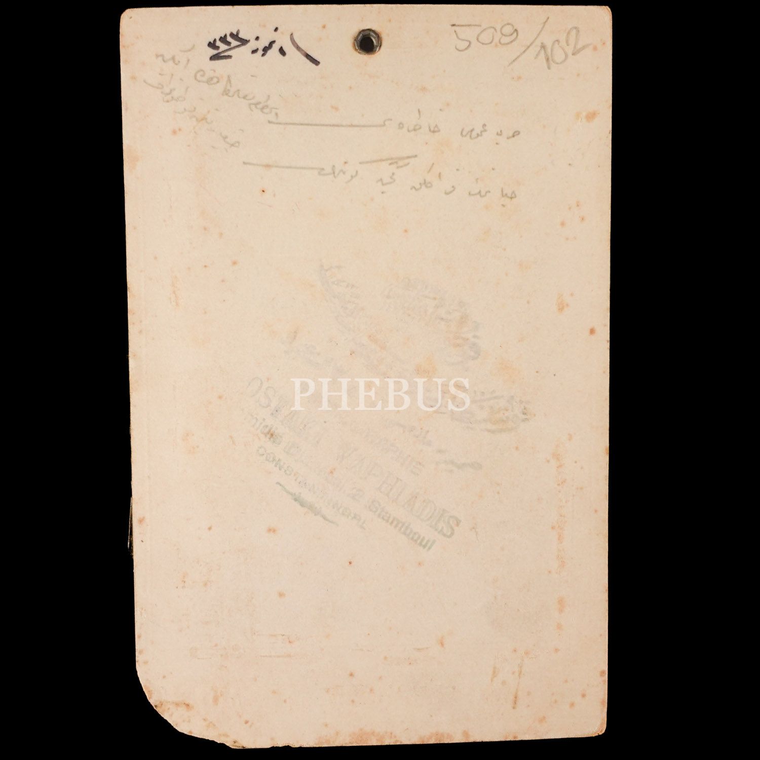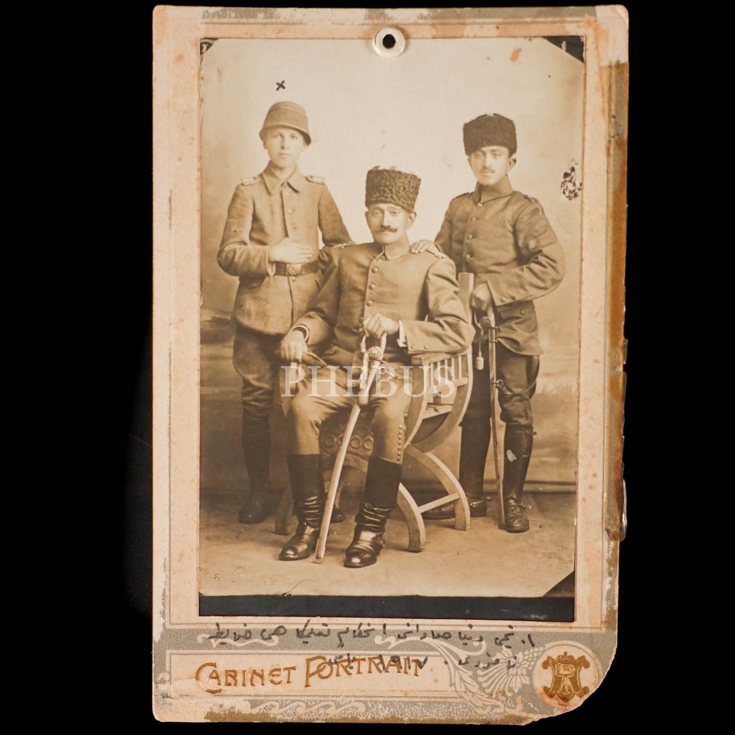 Bir Osmanlı subayının, kendisi gibi asker olan oğullarıyla aldırdığı kabin fotoğraf, Costaki Vaphiadis Fotoğrafhanesi, Constantinople, 11x17 cm...
