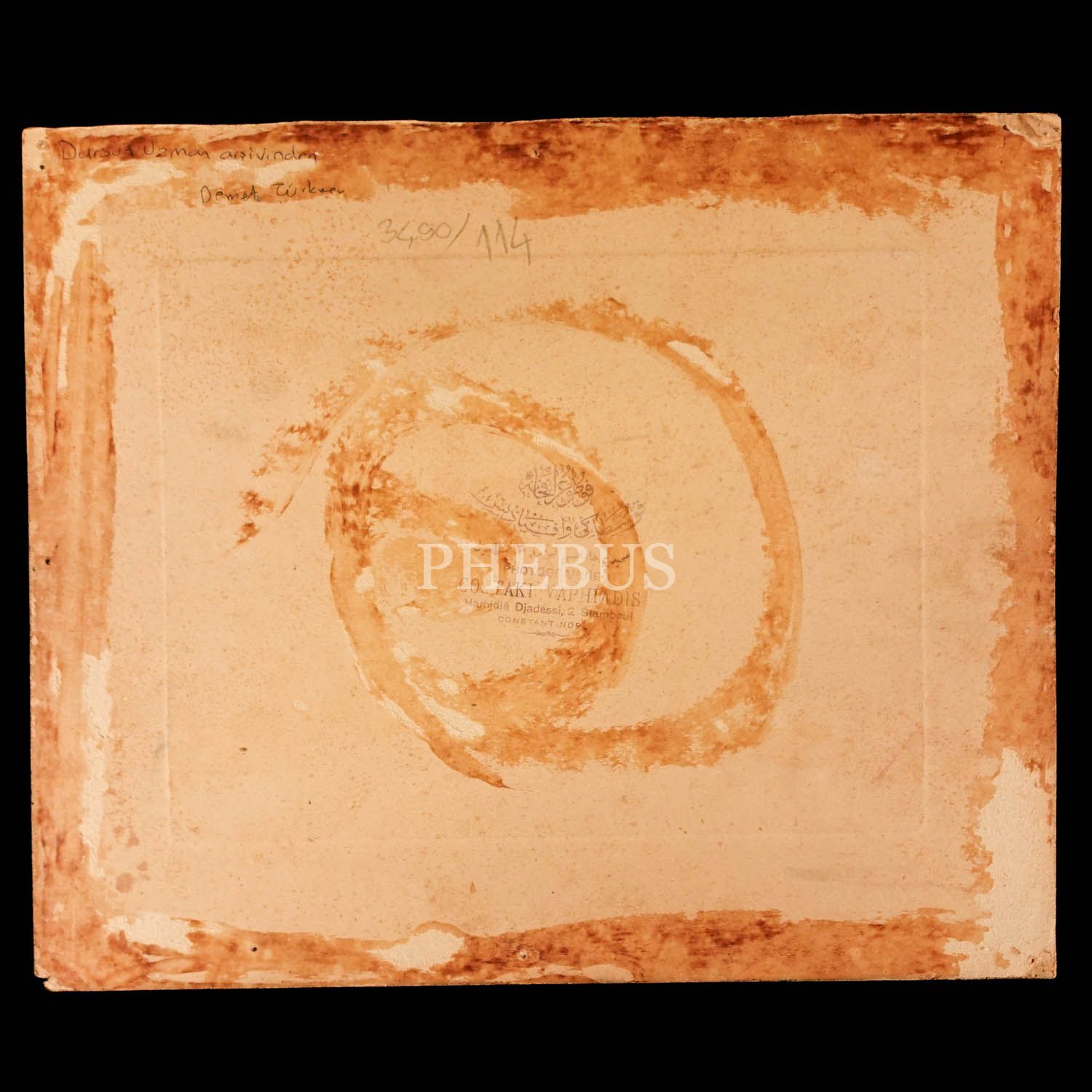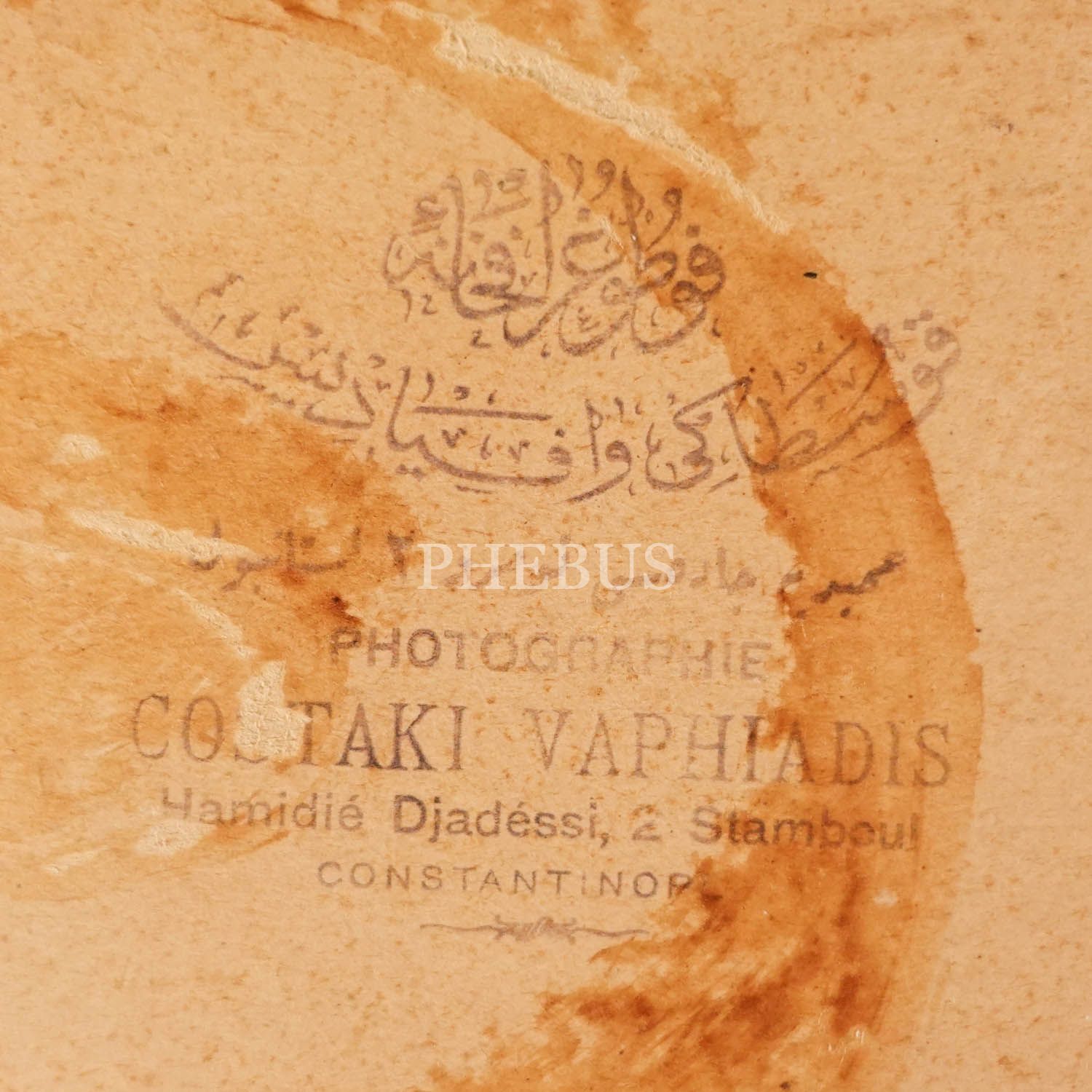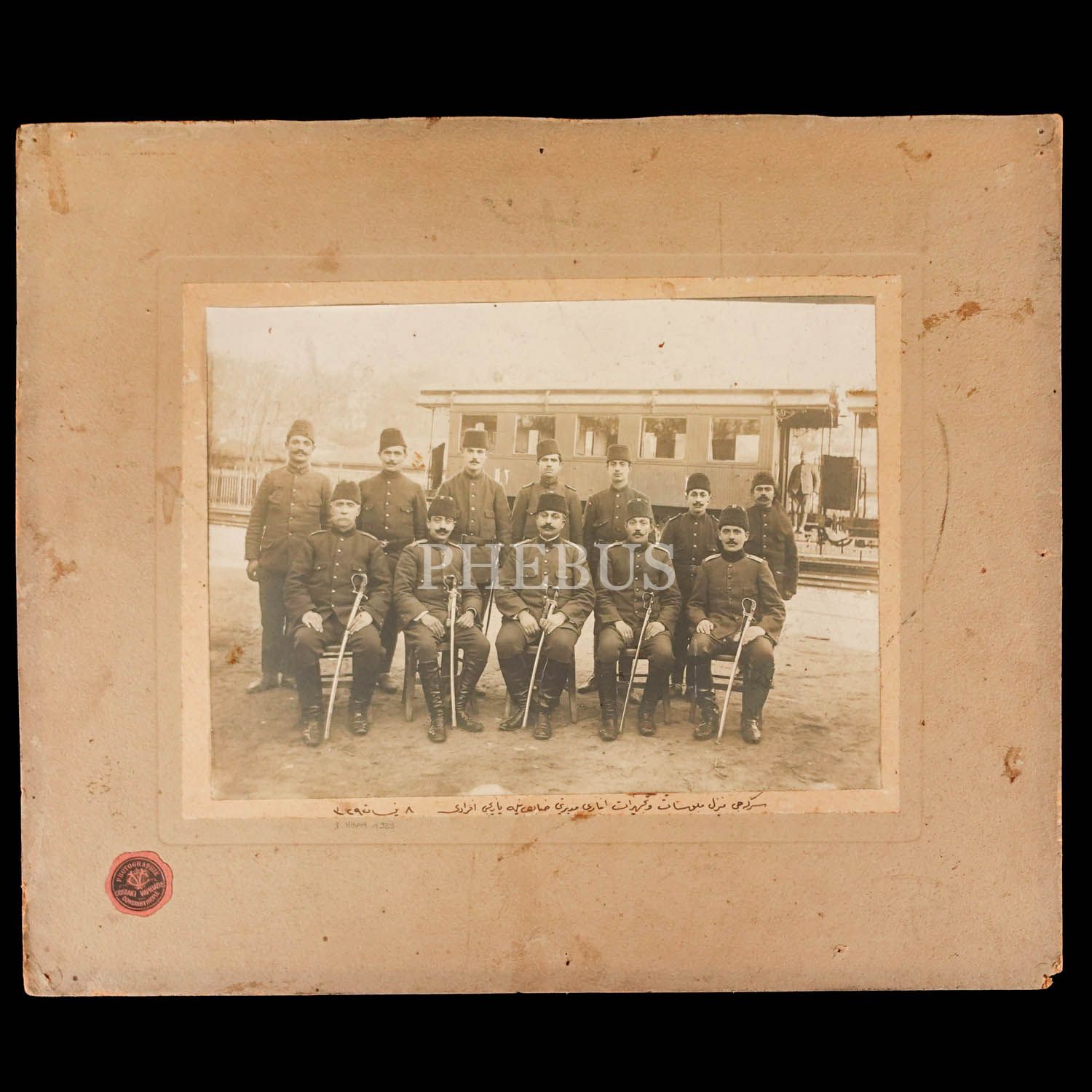 Cihan Harbi döneminden üst düzey Osmanlı subaylarının, Sirkeci Melbusat ve Teçhizat Ambarı'nda aldırdıkları hatıra fotoğrafı, Photographie Costaki Vaphiadis, Constantinople, fotoğraf 22x17 cm, paspartu 35x30 cm...