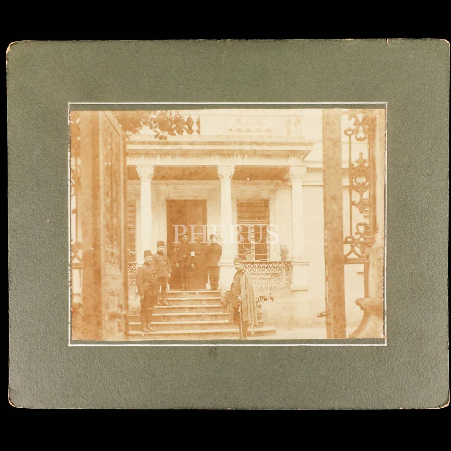 Cihan Harbi döneminden bir askeri bina önünde poz veren Osmanlı subayları fotoğrafı, fotoğraf 17x12 cm, paspartu 24x20 cm...
