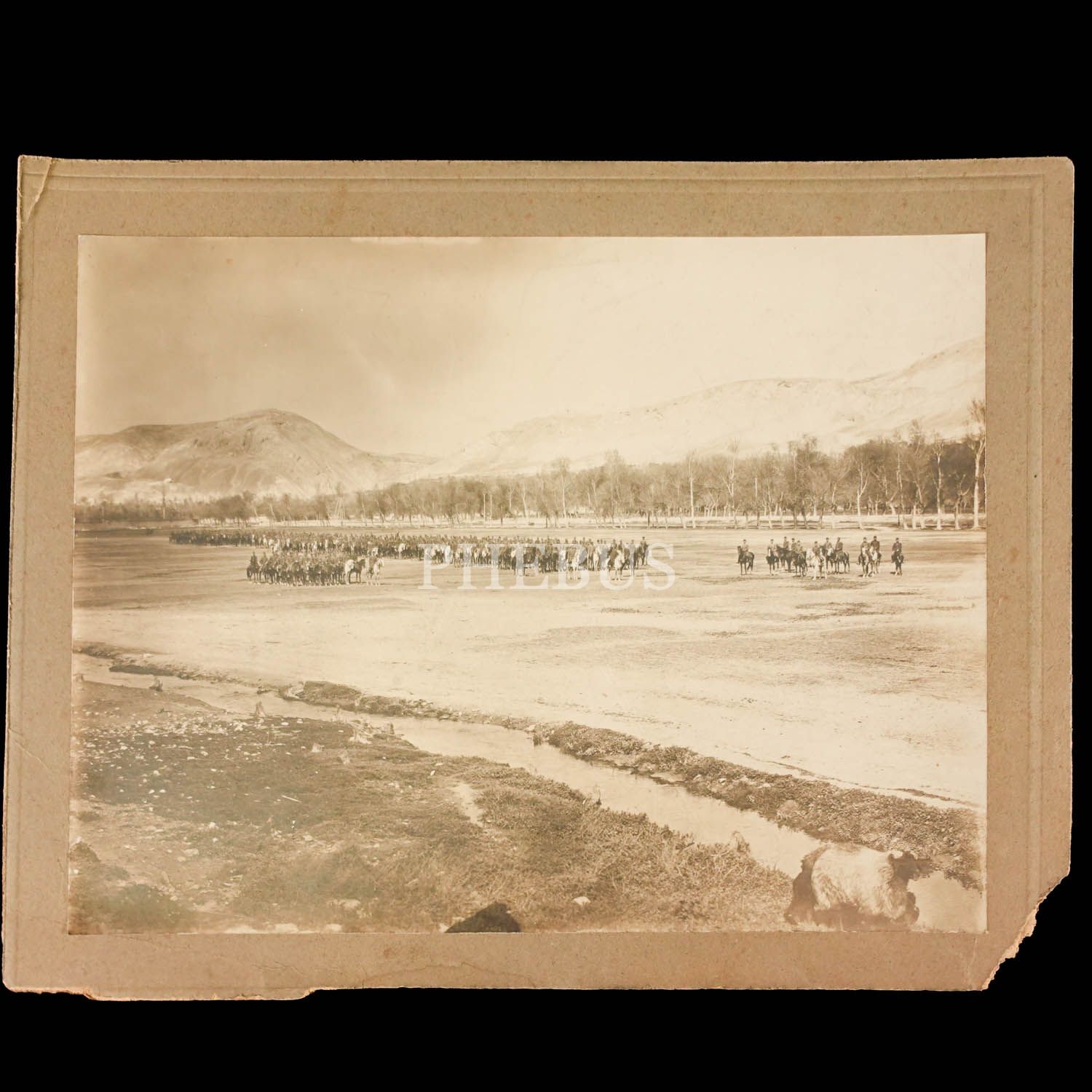 Cihan Harbi döneminden cepheye sevk edilen Osmanlı süvarileri fotoğrafı, paspartusuyla birlikte 32x25 cm...