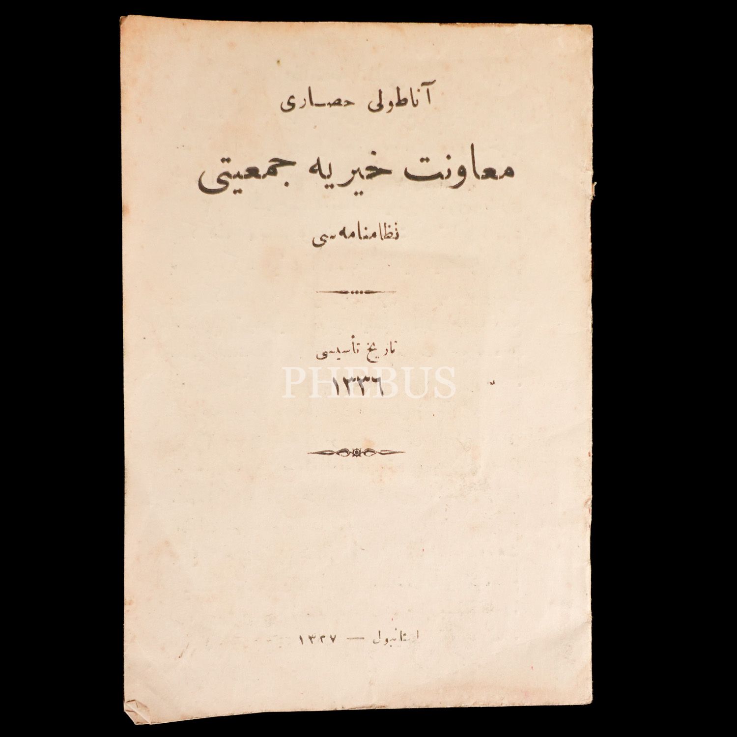ANADOLU HİSARI MUAVENET-İ HAYRİYE CEMİYETİ NİZAMNAMESİ, 1336, 7 sayfa, 10x15 cm...
