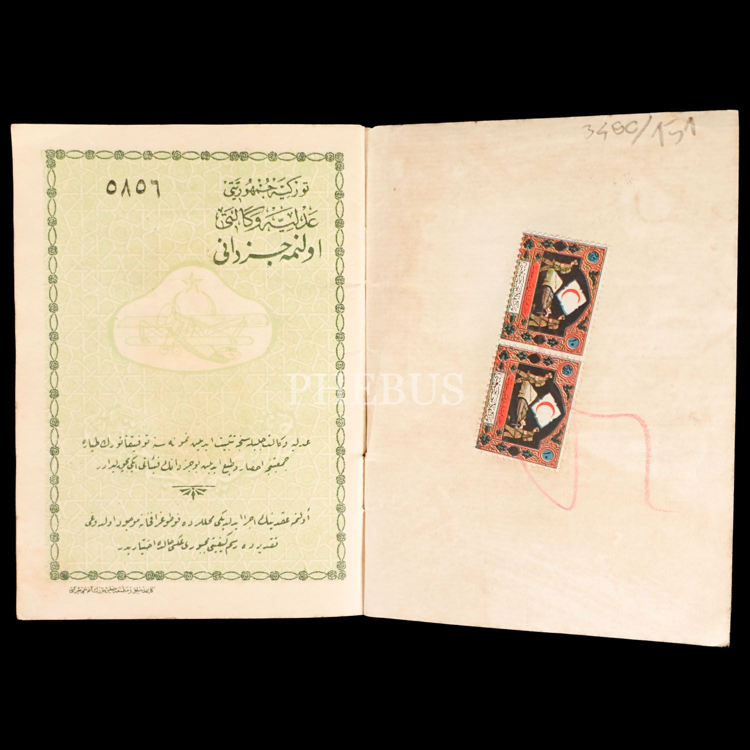 Osmanlıca Türkiye Cumhuriyeti Evlenme Cüzdanı, Türk Tayyare Cemiyeti filigranlı, 11x16 cm...