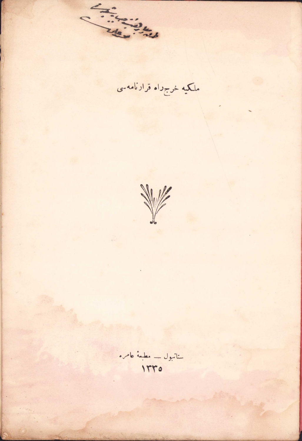 Osmanlıca Mülkiye-i Harcırah Kararnamesi, Matbaa-i Amire, 1335, ön kapak bir kenarı kopuk, 16 sayfa, 16x24 cm, ÖZEGE; 14789