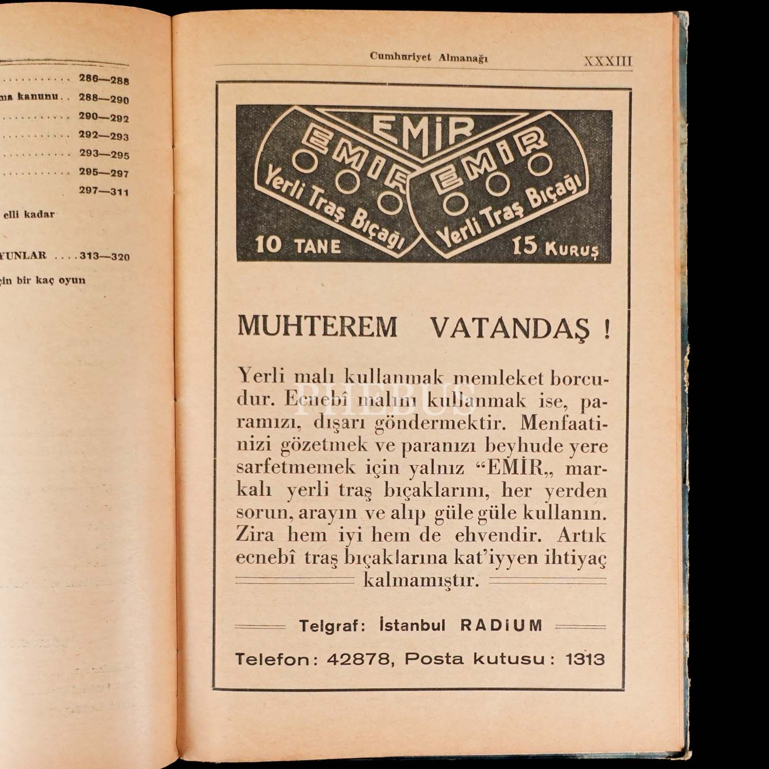 1935 CUMHURİYET ALMANAĞI, (neşreden: Matbaacılık ve Neşriyat T.A.Ş.), 326 sayfa + reklamlar, 14x20 cm...