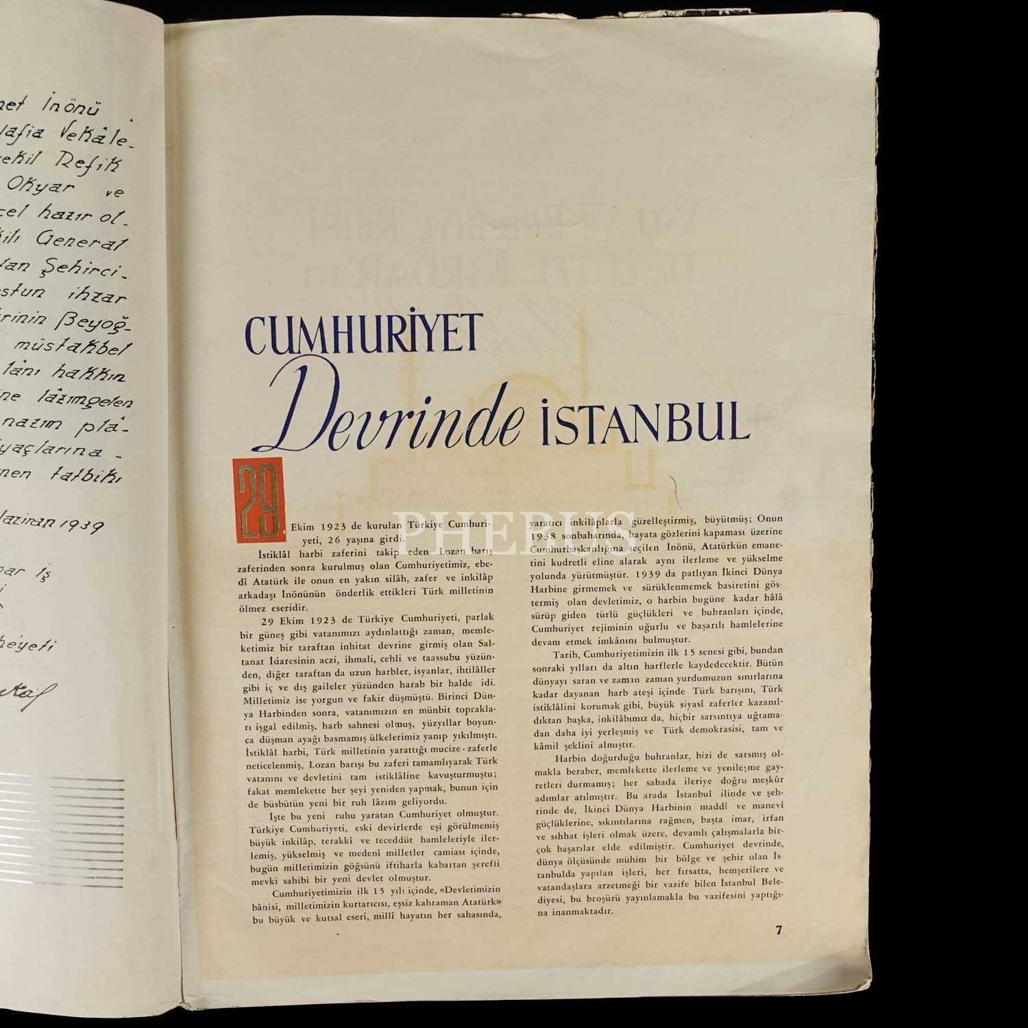 CUMHURİYET DEVRİNDE İSTANBUL, İstanbul Belediyesi Neşriyat ve İstatistik Müdürlüğü, 1949, Millî Eğitim Basımevi, 198 sayfa, 25x33 cm...
