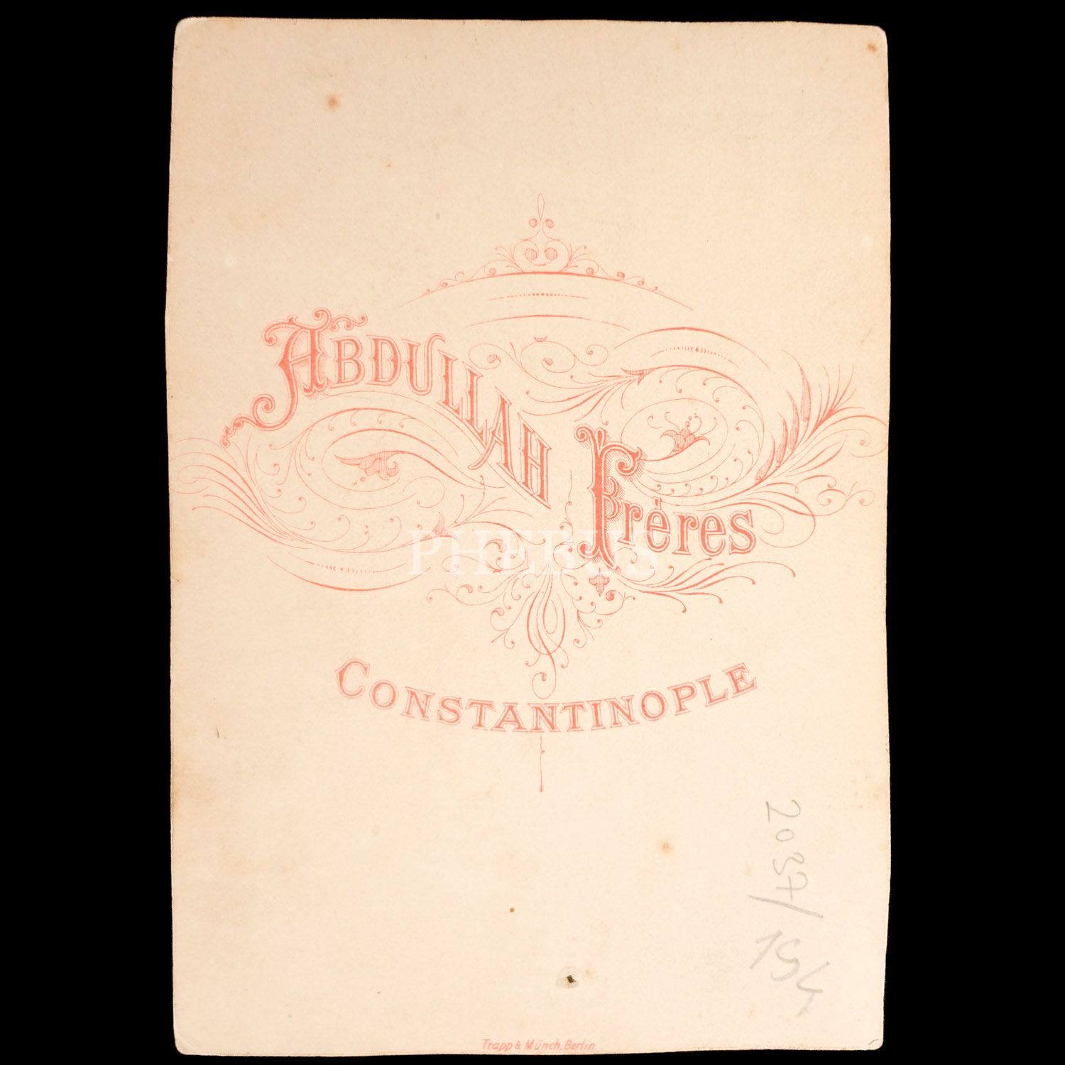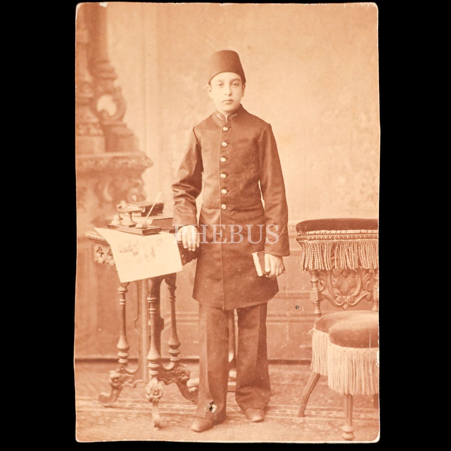 Kitaplarla poz veren bir askeri talebenin, Abdullah Freres Fotoğrafhanesi´nde (Constantinople) aldırdığı kabin fotoğraf, 10x15 cm...