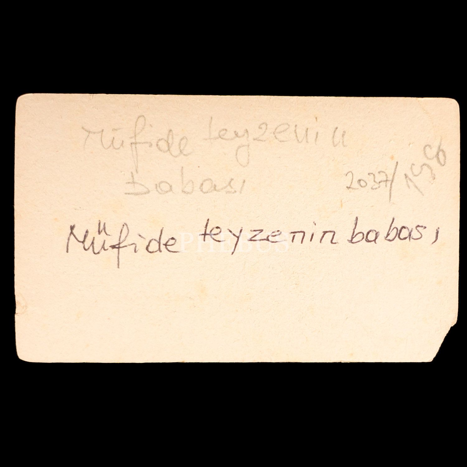 Fotoğrafın arka yüzüne yeni harflerle "Müfide teyzenin babası" notu düşülmüştür.