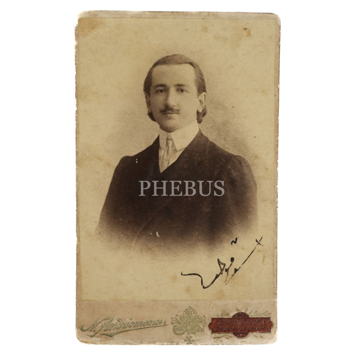 Deli Fuat Paşa´nın oğlu Esat Fuat Tugay´ın N. (Nicolas) Andriomenos Fotoğrafhanesi´nde (Constantinople) aldırdığı imzalı hatıra fotoğrafı, 6x11 cm...