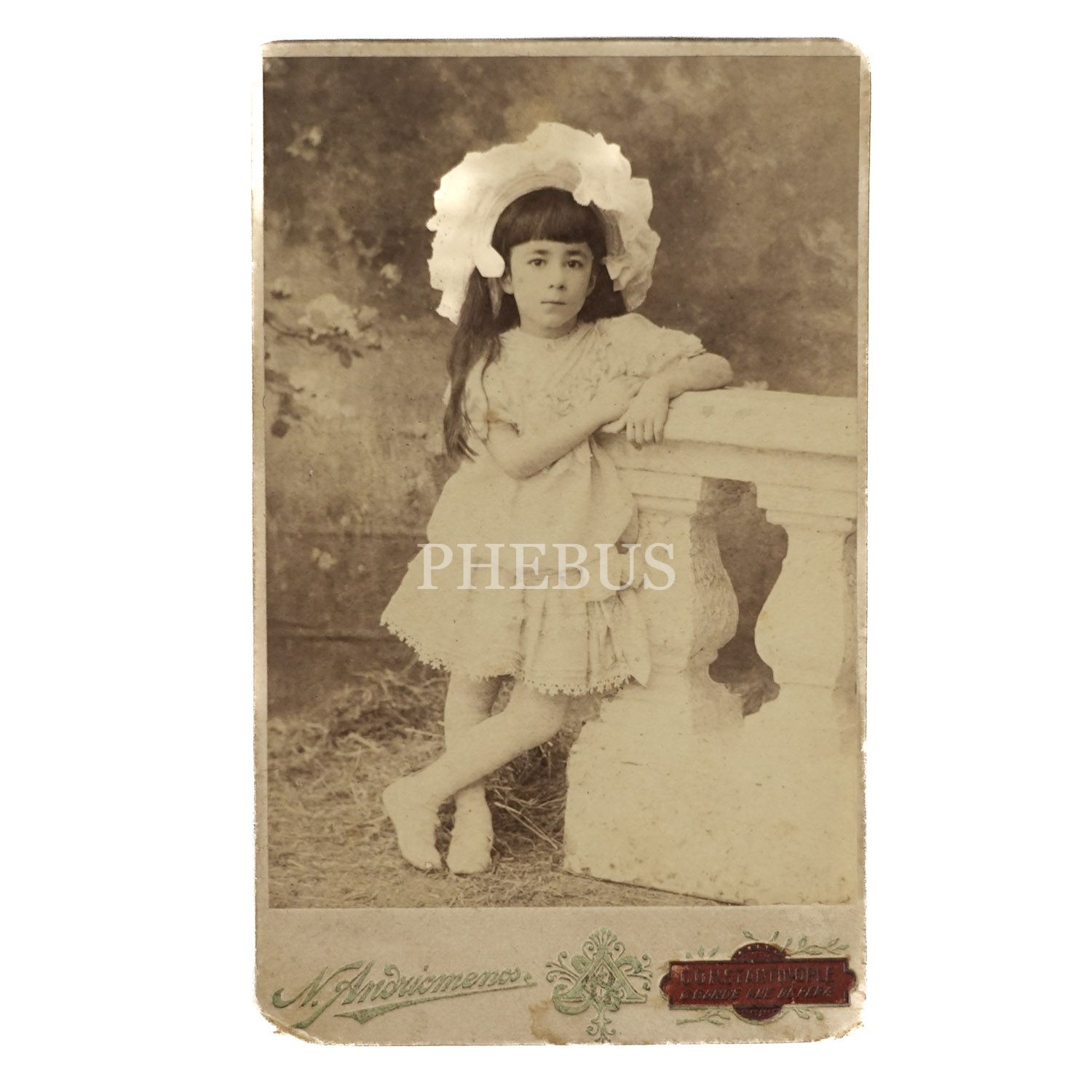 Küçük kızın N. (Nicolas) Andriomenos Fotoğrafhanesi´nde (Constantinople) aldırdığı hatıra fotoğrafı, 11x17 cm...