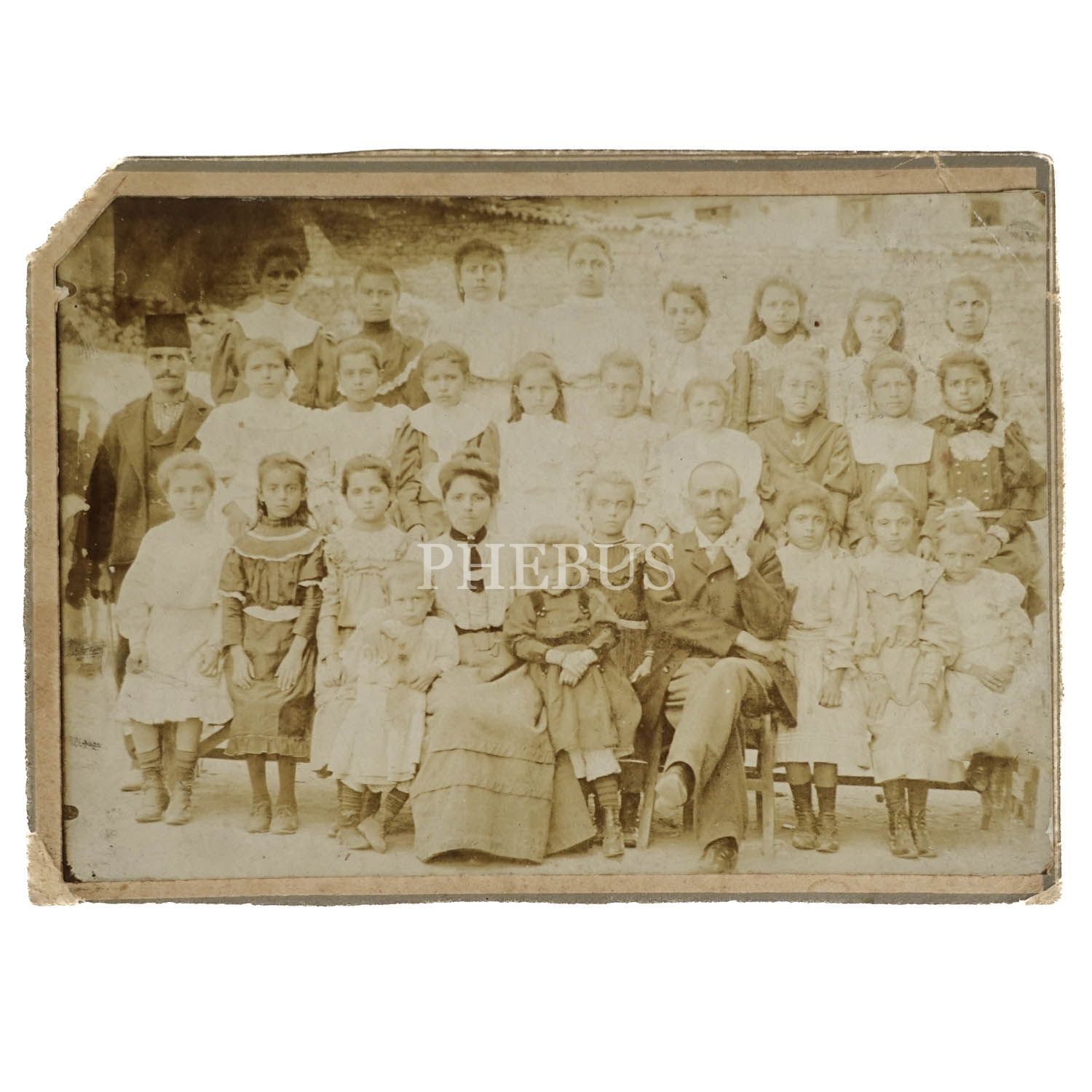 Osmanlı döneminden, bir kız mektebi öğrencileri ve öğretmenlerinin hatıra fotoğrafı, 17x13 cm...