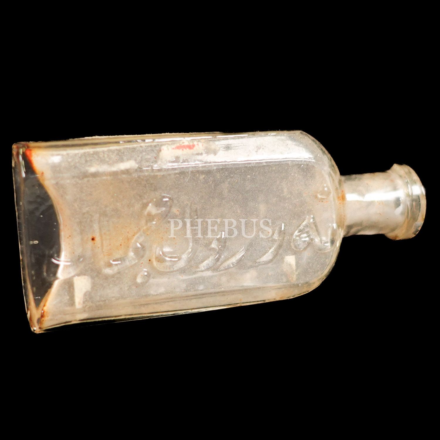 Osmanlıca "Nevrol Cemal" kabartma yazılı cam şişesi, 9x4 cm...