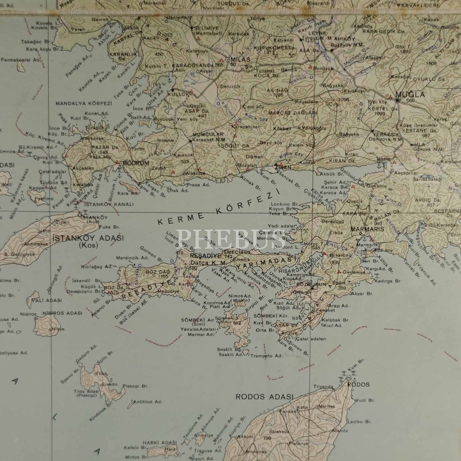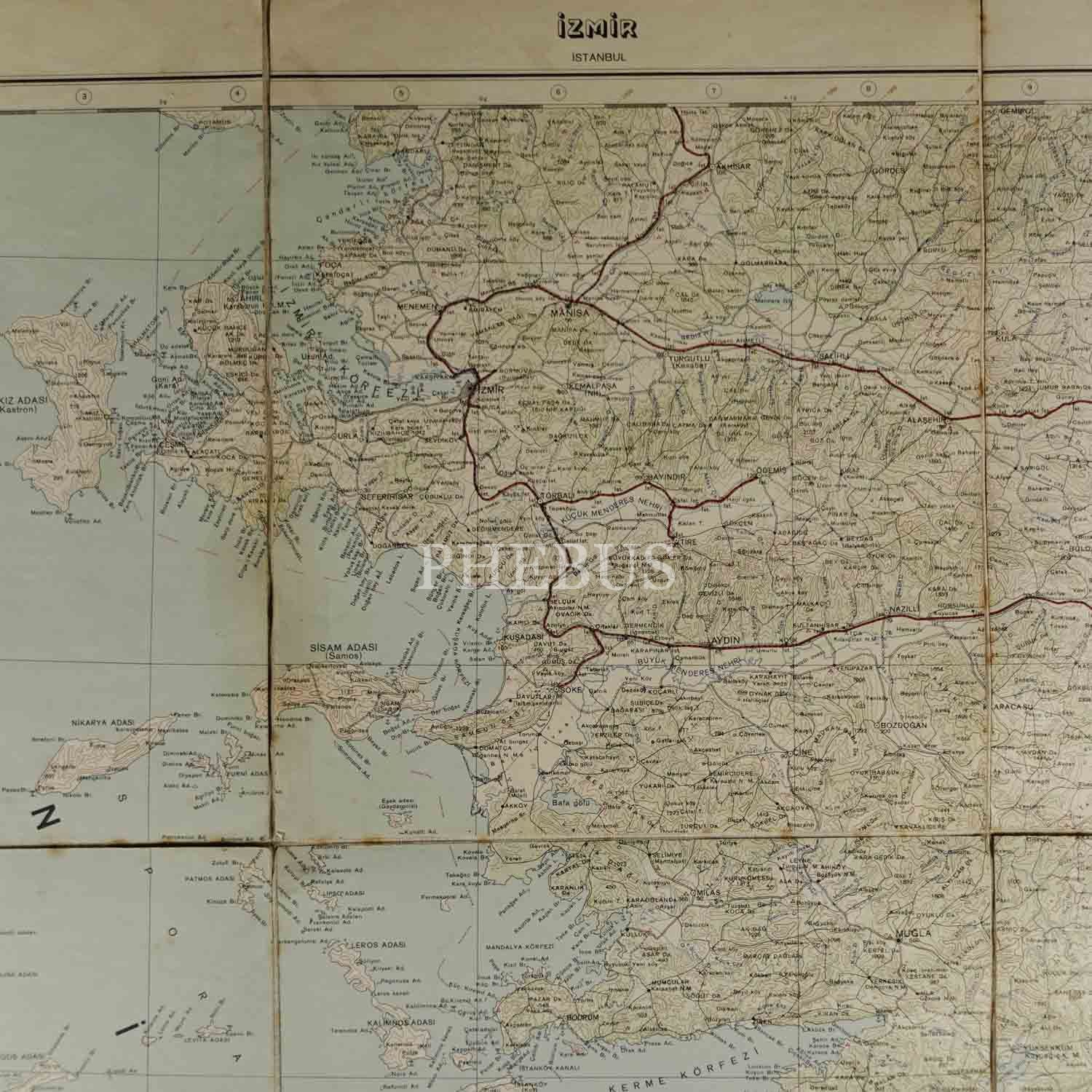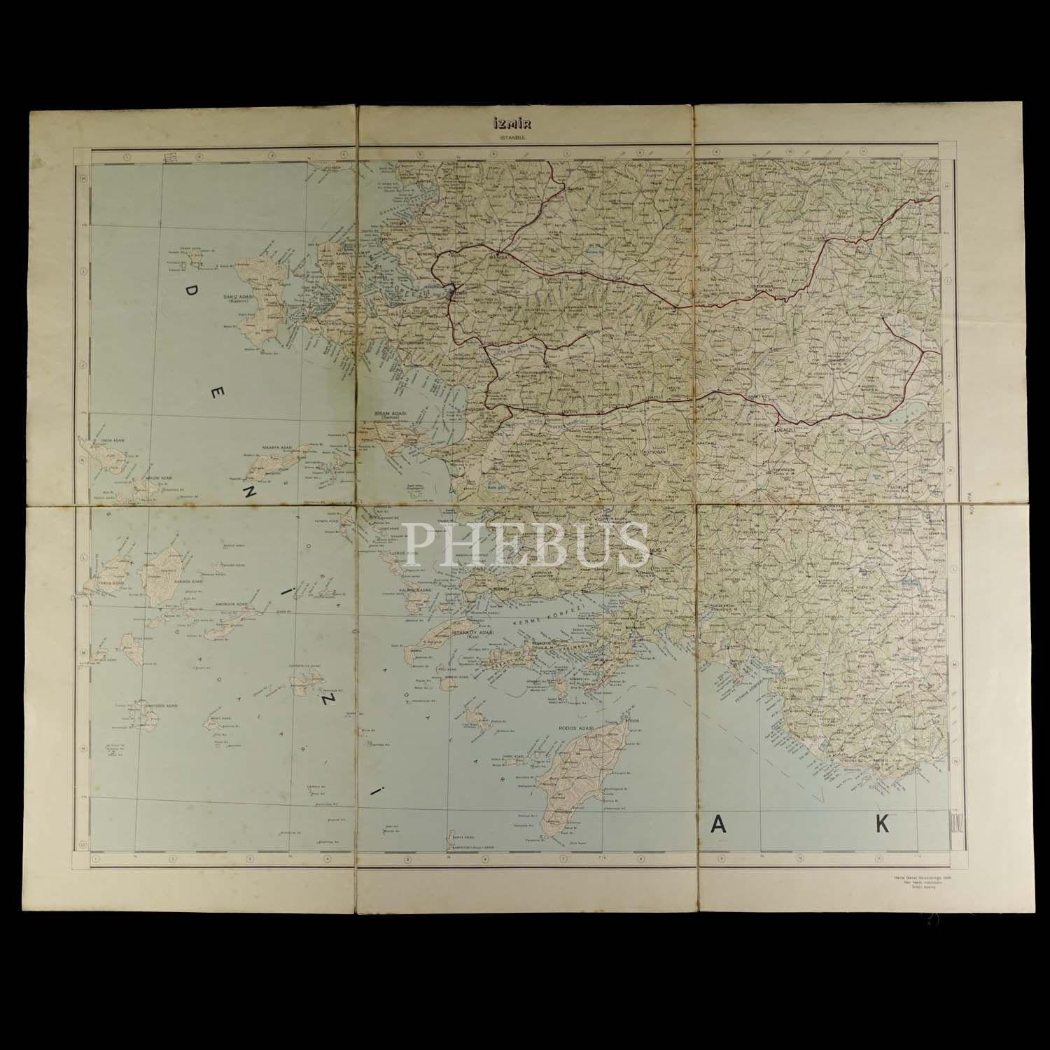 İzmir haritası, Harita Genel Direktörlüğü, 1936, 66x53 cm...