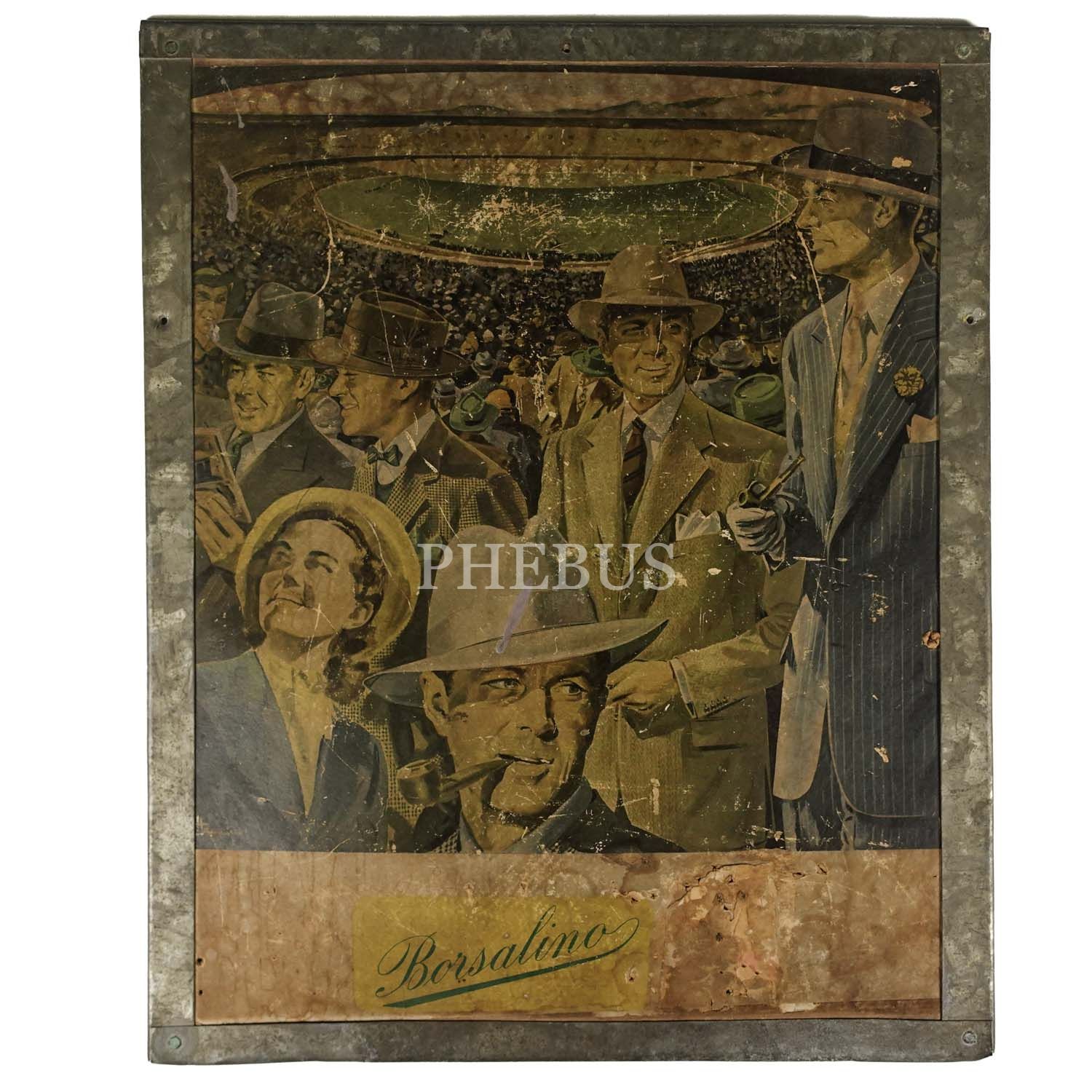 Metal çerçevesi içinde Borsalino şapkaları reklam kartoneti, 36x44 cm...