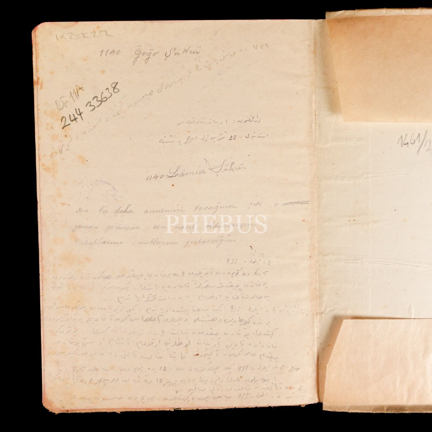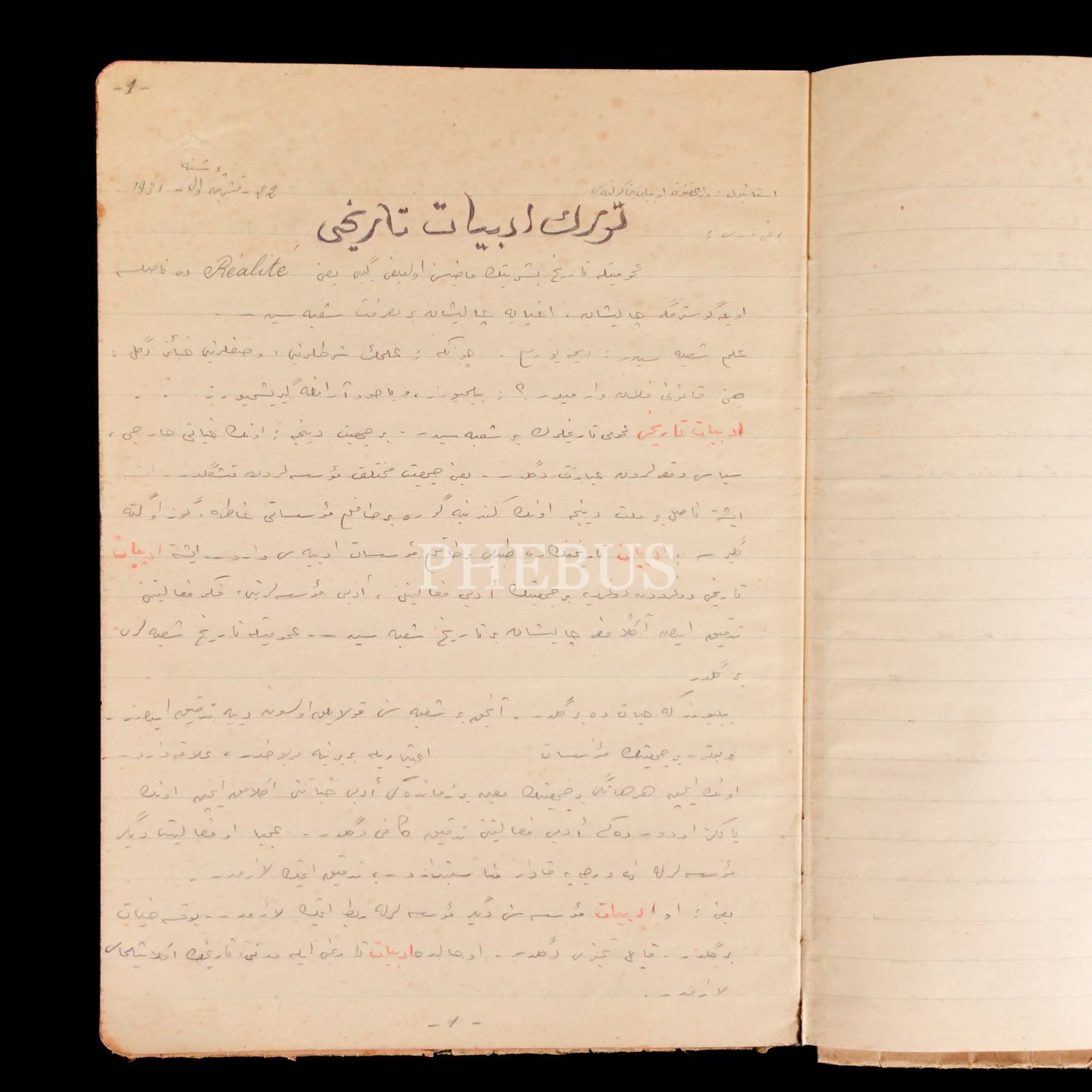 Lamia Şükrü Hanım´ın Mehmed Fuat Köprülü´nün Türk Edebiyatı Tarihi adlı eserinden tuttuğu defter, 17x23 cm...