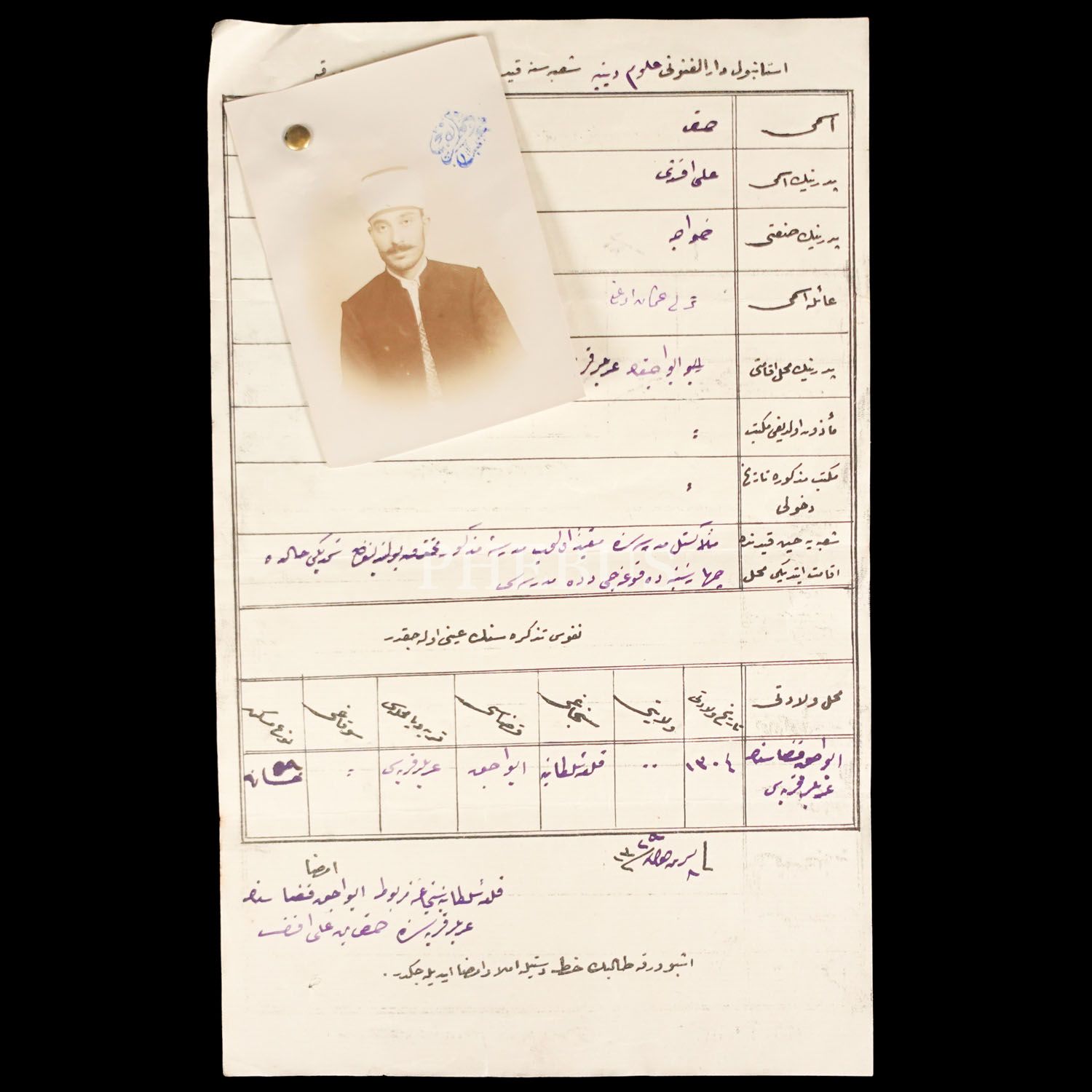 İstanbul Darulfünun Ulum-u Diniyye Şubesi´ne kayıt olan Ali Efendi´nin evrakı, 17x27 cm...