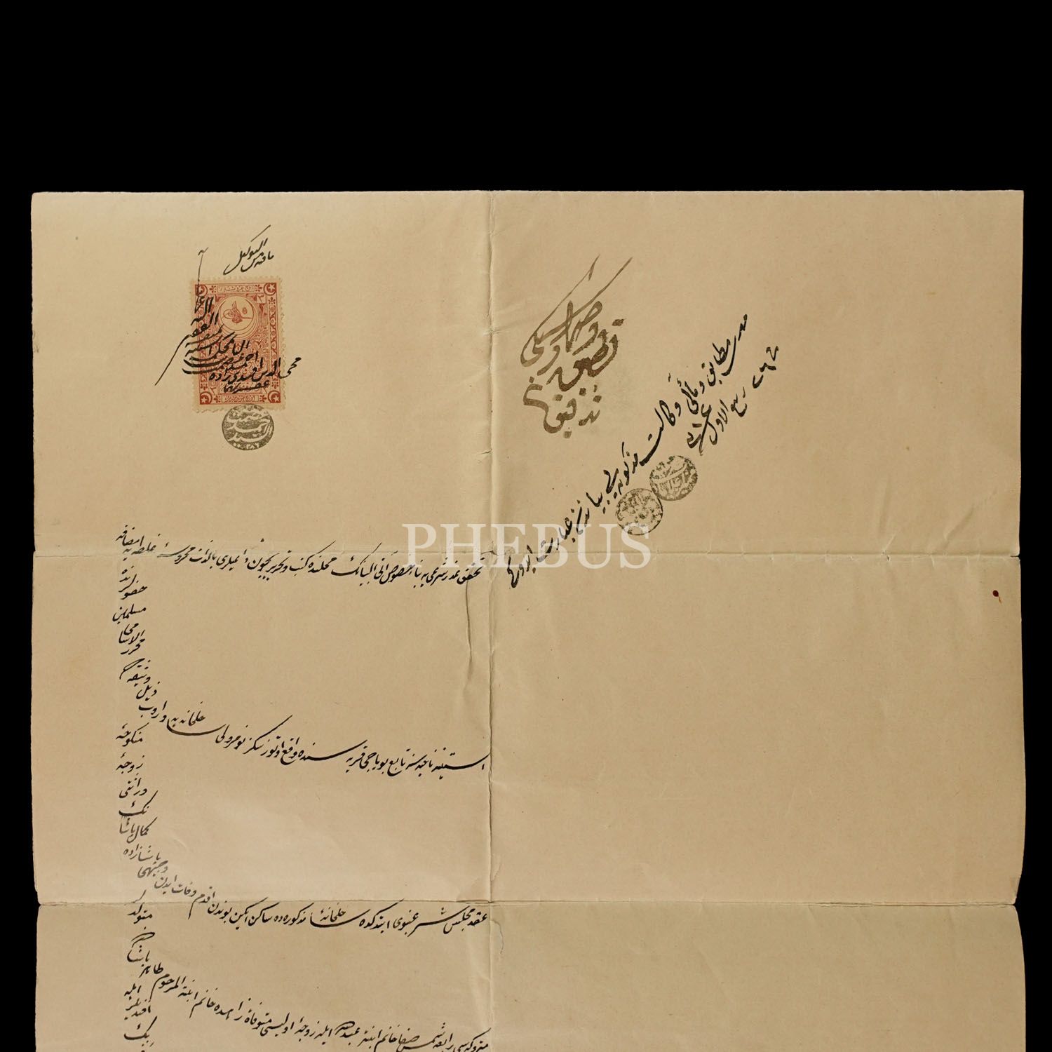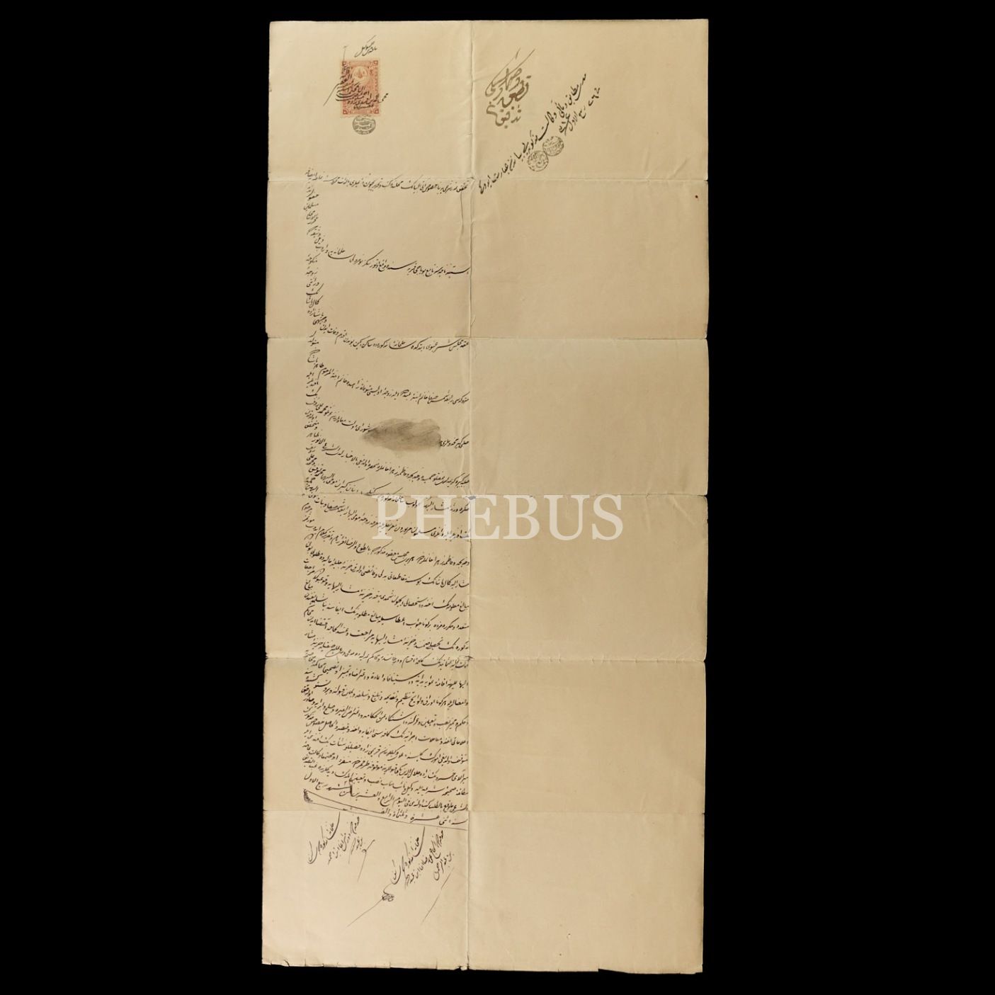 Vecihi Paşazade Kemal Paşa´nın vefatı üzerine mirasının eş ve çocukları arasında paylaştırılmasını konu alan evrak, 82x29 cm...