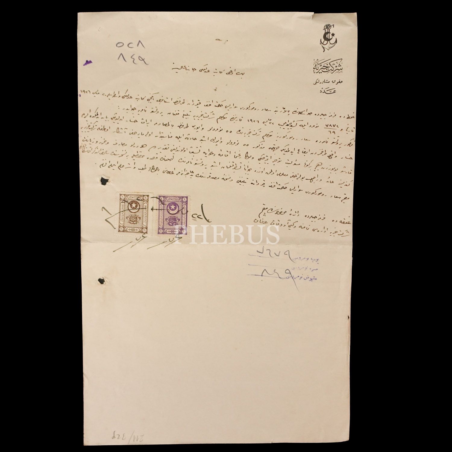 Şirket-i Hayriye antetli ve Beyoğlu Katib-i Adlisi´ne hitaben kaleme alınmış evrak, 22x34 cm...