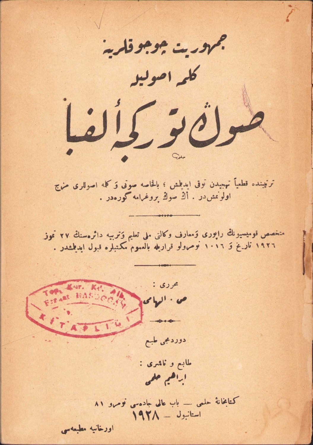 Osmanlıca Cumhuriyet Çocuklarına Kelime-i Usuliyle Son Türkçe Elifba, S. İlhami, dördüncü baskı, Orhaniye Matbaası, 1928, resimli, ön kapak yok, 64 sayfa, 13x19 cm, ÖZEGE; 3157