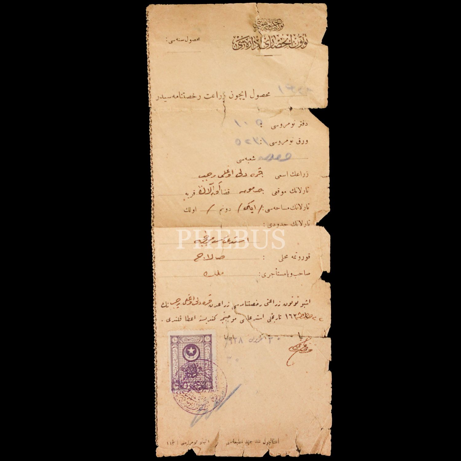 Türkiye Cumhuriyeti Tütün İnhisarı Dairesi antetli, mahsul için verilen ruhsatanme, 10x24 cm...