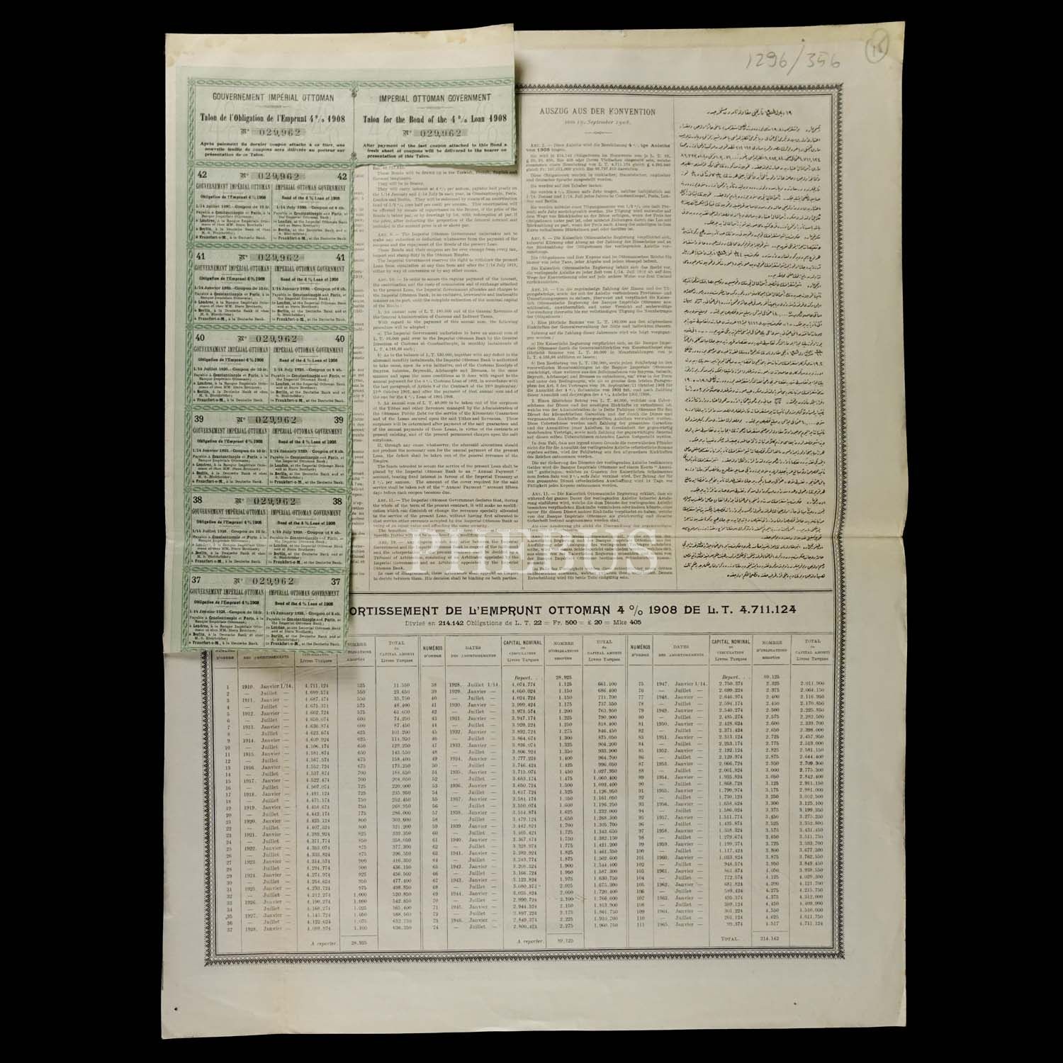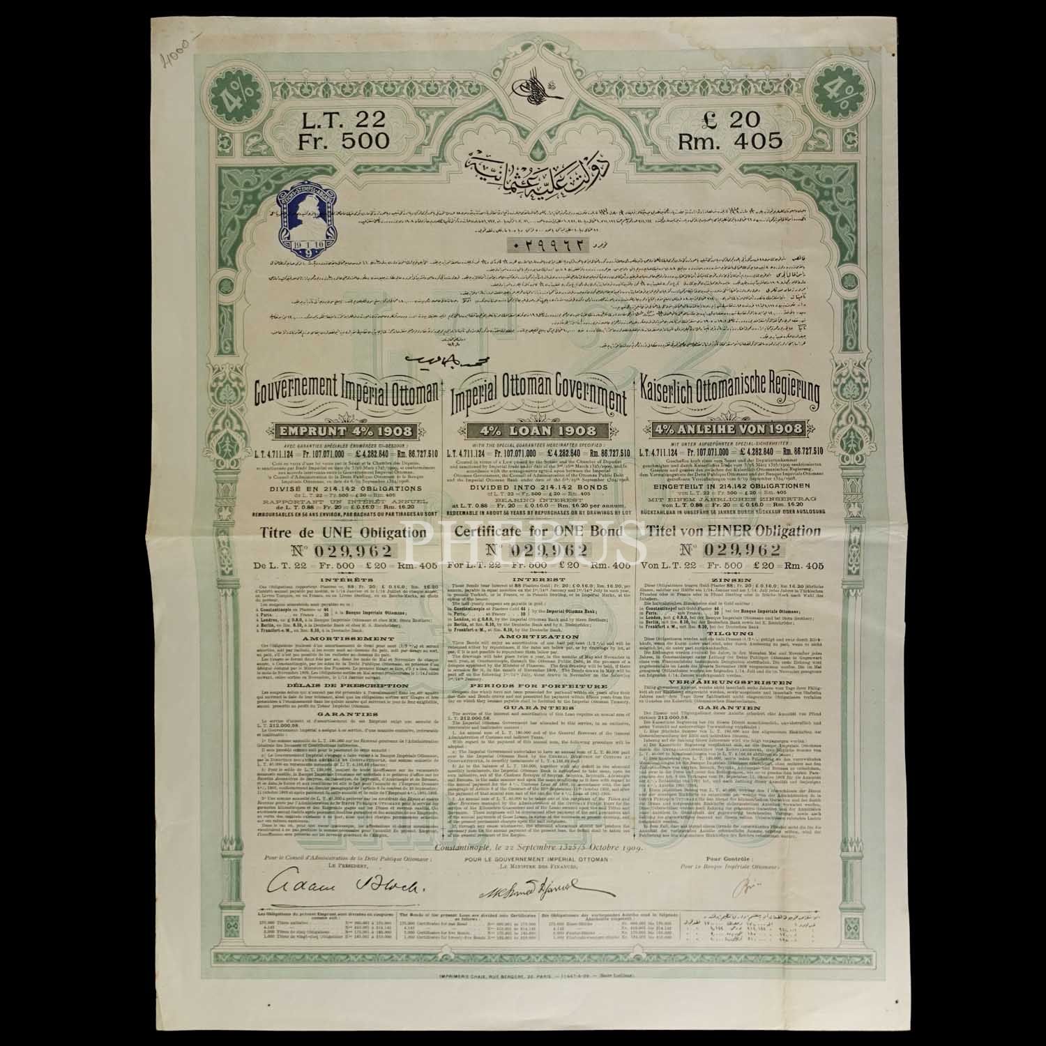 Sultan Mehmed Reşad tuğralı Devlet-i Aliyye-i Osmaniye tahvil senedi, 37x50 cm...