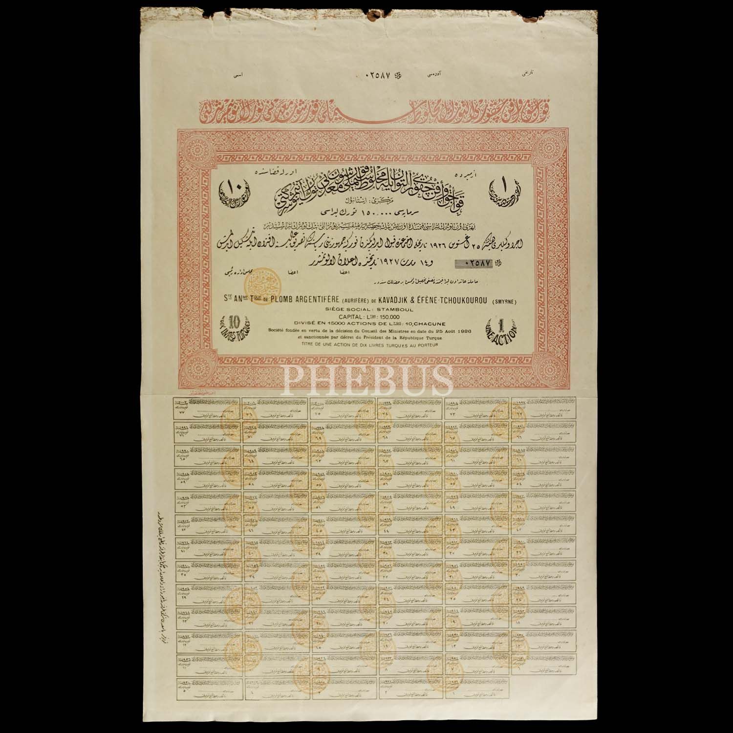 Kavacık ve Efinçukuru Altın ile Mahlut Simli Kurşun Madeni Türk Anonim Şirketi hisse senedi, 31x49 cm...